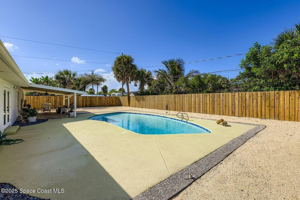 Truly Beach Style Living. This updated 3 Bedrooms 2 Baths Home is well appointed with many upgraded features in the Kitchen, Bathrooms and throughout. The inviting Private Pool has a Beach theme that has a clean look with very low maintenance. Fenced in Rear Exterior makes Privacy grand; Covered Patio is great for entertaining or just sitting with a pool view. Excellent location with a short walk to the Beach. Home Warranty is included to make the Home even more attractive.