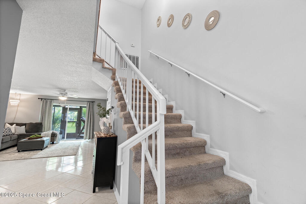 Welcome to 737 Palm Springs Beachside townhome in the Heart of Indian Harbour Beach - Less that a 5 minute walk to the beach, and blocks from local restaurants and shops, this beautifully updated 2-bedroom, 2.5-bath townhome with a 1-car garage offers the perfect balance of coastal and convenience living.This community is all about true maintenance-free living. The HOA covers internet, cable, exterior paint, roof repair/replacement, landscaping, and master insurance--keeping your property insurance costs minimal.Step through the private courtyard shaded by a beautiful bougainvillea pergola --ideal for morning yoga, barbecues, or simply unwinding in the afternoon. Inside, the open first floor features a spacious kitchen with breakfast nook, a large dining/family area, and tile floors throughout. The fully enclosed lanai, creates a versatile flex room--perfect for a gym, home office, or the perfect place for that morning cup of coffee or evening glass of wine. On the second floor