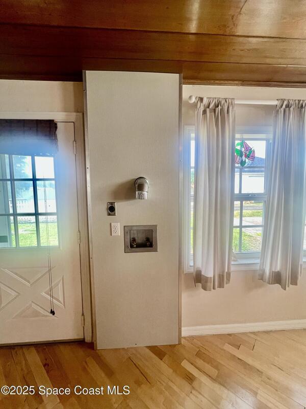 New Owner Wanted! Charming 2 Bedroom Concrete Block Home on .24 Acres in NE Palm Bay available NOW! 2Steps to the Indian River! Not in a Flood Zone / 20+ Feet above Sea Level! Zoned for Commercial and Residential! Metal Roof! Impact Windows! Handicap Accessible! All New / Updated Plumbing! Updated New Water Supply Lines! Updated PVC Sewer Lines (No Cast Iron)! All New Electrical Service, Panel and Wiring! Updated Kitchen Cabinets and Counters! Updated Bathroom! Newer AC (2022)! On Demand Water Heater (2023)! Wood Flooring over Terrazzo! Tile Flooring in Bathroom w/ Roll-In Shower! Washer / Dryer Hookups Inside! Wooden Ceiling in Kitchen / Living Room! Ceiling Fans! Paver Front Porch, Driveway, and Patio! Large 10*16 shed / Shop! Wooden Fence around Most of the Yard!