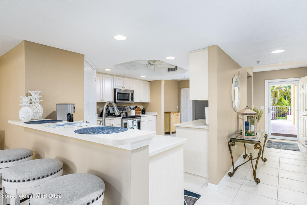Welcome to Solana Lake, an immensely popular condominium with an active lifestyle with a private walkway to the beach. Larger 2bed/2bath PLUS a den. Kitchen has a large pantry and eat-in area. Both bedrooms have walk-in closets. The balcony has the very coveted SE view. Enjoy an awesome view of cruise ships, rocket launches, and wildlife. Ample green space and parking. Unique island pool, spa, and cabana. Oversized 364 SF PRIVATE garage on first floor. Amenities include tennis courts, beautifully renovated clubhouse with well-equipped gym, sauna, etc. Walk/bike to Jetty Park and restaurants. Excellent location with easy access to Port Canaveral, Airports, Kennedy Space Center, and attractions. Gated condo with secure lobbies.