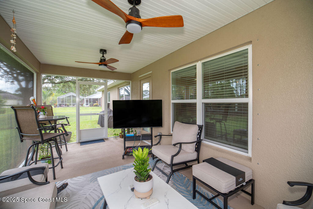 Dream Home Awaits in Coveted Palm Bay. Welcome to one of Palm Bay's most desirable and rapidly growing neighborhoods. This beautifully maintained, single-owner 4-bedroom, 2-bathroom home is an exceptional blend of luxury and functionality, featuring top-tier upgrades throughout. Enjoy the Florida lifestyle with a spacious 10' x 20' screened-in lanai, perfect for dining, relaxing, and entertaining. Gourmet Kitchen: Equipped with premium LG stainless steel appliances, including a slide-in electric range with InstaView, Air Fry, and ProBake technology, plus an InstaView glass refrigerator with Craft Ice and PrintProof finish. The master bath offers a luxurious garden tub, bathed in natural light through a privacy window.Ceiling fans in every room and a RainSoft whole-house water treatment system for added comfort and quality. Tech-Ready Garage: Includes a 50-amp plug, ideal for RV or electric car.