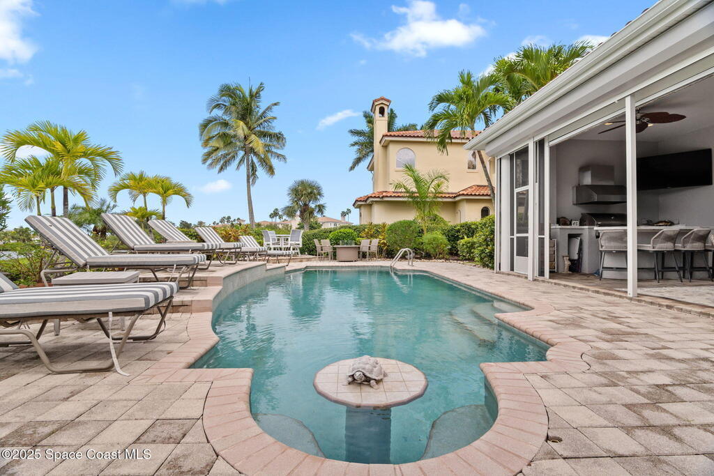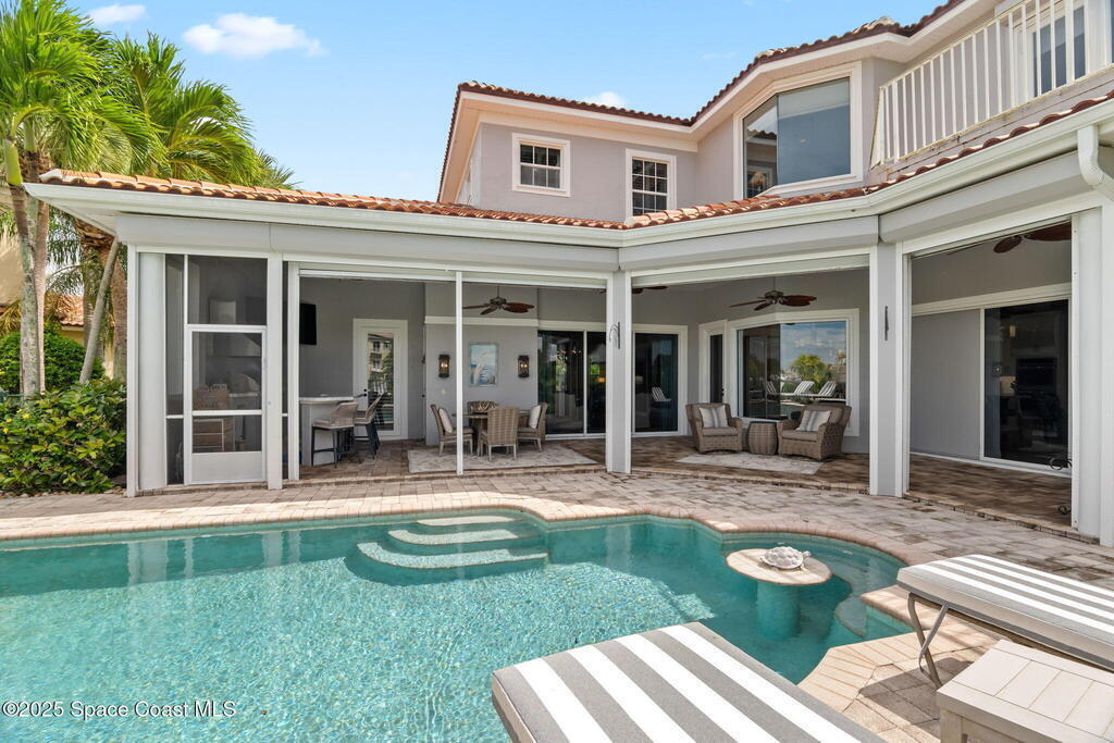 Located in desirable Grand Harbor Golf Club community. This waterfront estate offers 4BR/4.5BA, 3-car garage, with harbor, lagoon, & river views. Features include New 2023 roof, Newer A/C's, fresh exterior paint, renovated kitchen with large island, 4 renovated ensuite baths, new bedroom carpet, & dual primary suites (1 upstairs w/ balcony, 1 downstairs). All bedrooms have walk-in closets and ensuite bathrooms. Renovated summer kitchen and covered patio will roll down screens and shutters. 2 championship golf courses, racquet sports complex, & beach club. The Golf Club has availability for new memberships at this time!!