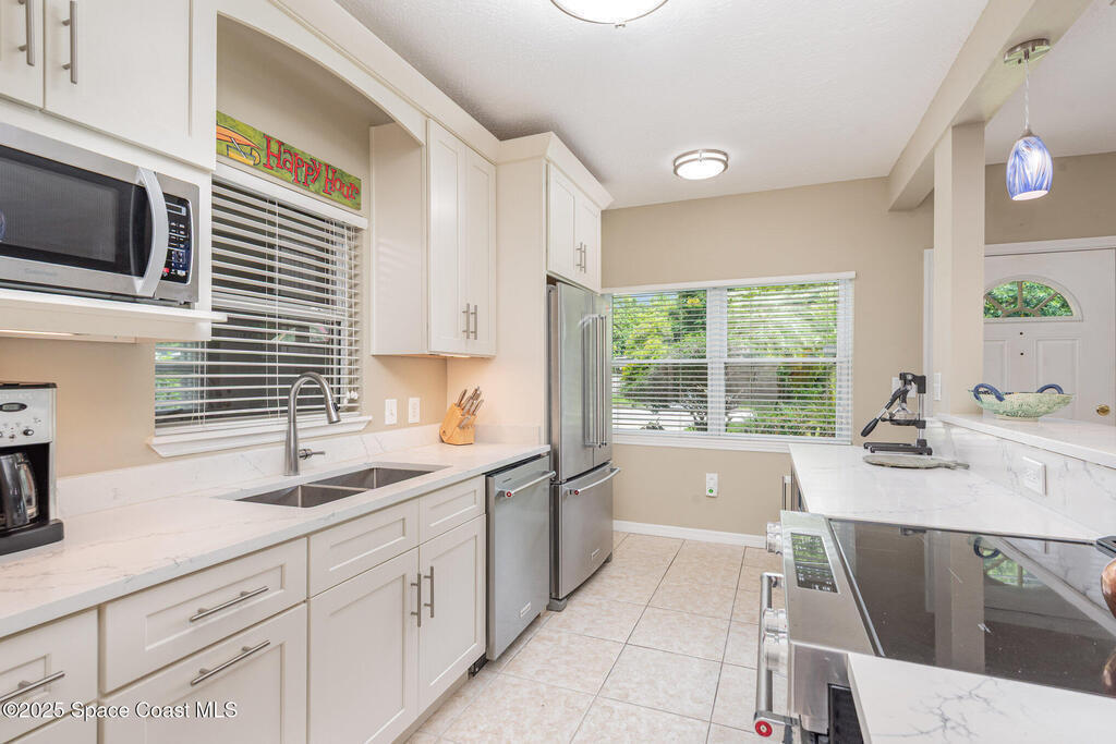 This beautiful 3-bedroom, 2-bathroom home in the historic Rockledge District is a stunning blend of classic charm and modern updates. The property has been meticulously maintained and recently upgraded, offering a truly turn-key experience. Inside, you'll find a light-filled, open space with 8'6'' ceilings. The custom-designed kitchen is a highlight, featuring new KitchenAid appliances, soft-pull cabinetry, and elegant Cambria quartz countertops. It also includes a built-in, two-zone wine refrigerator, perfect for entertaining. This home's infrastructure has been completely updated for peace of mind, with newer plumbing, electrical, and HVAC systems. The double-membrane metal roof, double-paned windows, and hurricane accordion shutters on all windows provide excellent storm protection, complemented by a whole-house Generac generator. The interior features fresh paint, luxury vinyl plank and tile flooring, and quality window treatments throughout.