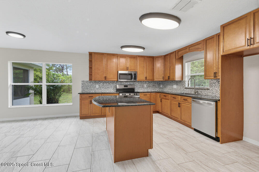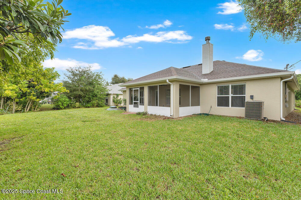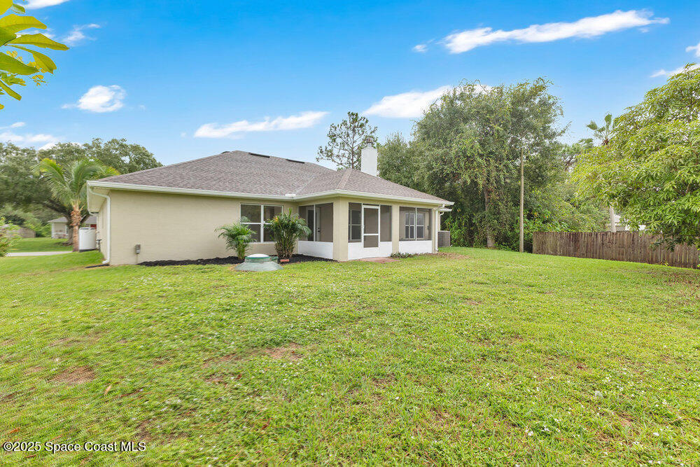 Wow! New Price! Don't miss out on this beautiful 3 bed 2 bath spacious, ready to move-in home in southeast Palm Bay. The home was just connected to city water and also has a fully functioning well system for watering the lawn. The home sits on an elevated lot with a 2 car garage and screen porches on the front and rear. The roof was replaced in 2018. You'll love all the nice upgrades in the interior with custom kitchen cabinets, granite counter tops, new stainless appliances, porcelain tile floors, ceiling fans, wood laminate flooring in the bedrooms and new interior paint. The bathrooms have been upgraded with custom cabinets, granite tops and a large walk-in shower in the primary bath. The laundry room has plenty of cabinet and countertop space. Other updates include a new air pump for the Nayadic aerobic wastewater treatment system, new exterior paint, rain gutters and a new compressor for the AC condenser.