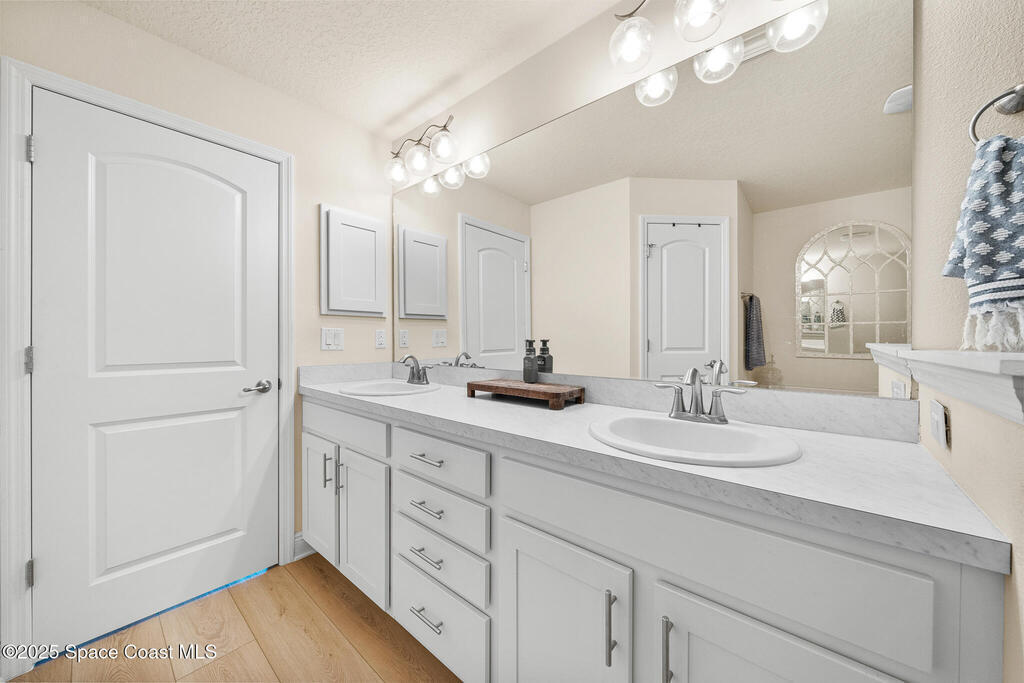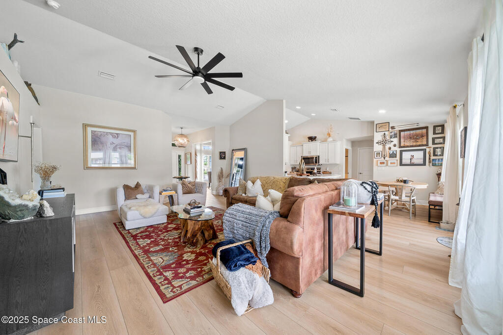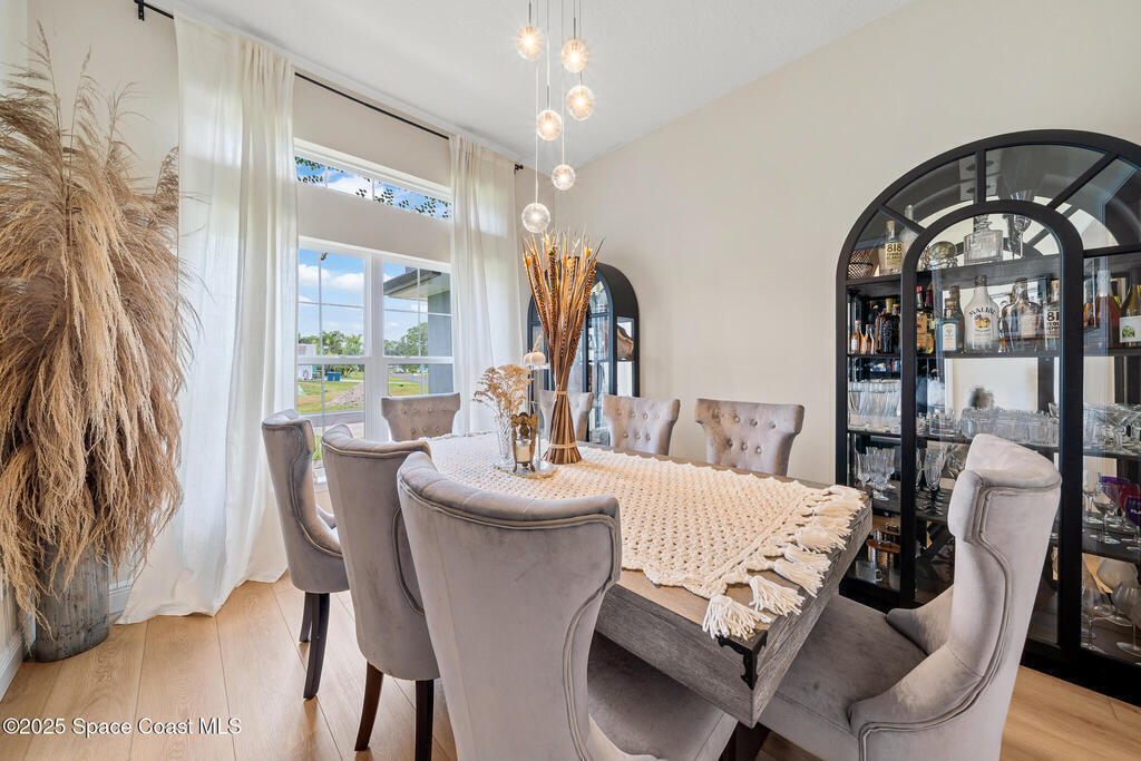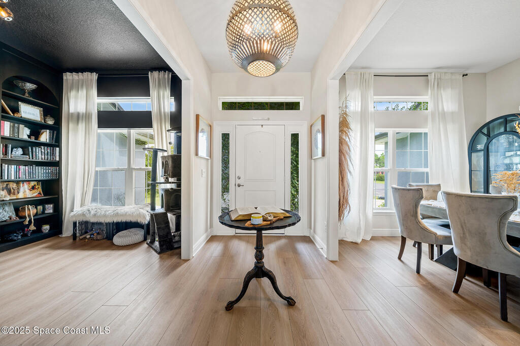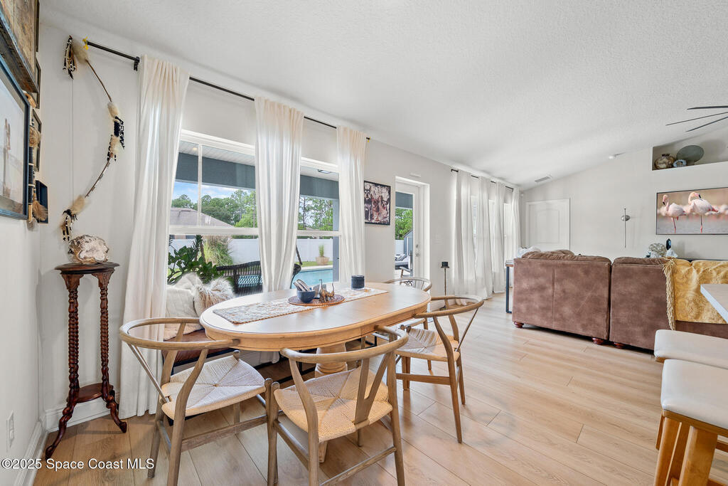 Better than new home with designer features, a POOL and NO HOA! Split floor plan with the primary and guest bedroom overlooking the pool, two more guest bedrooms on a separate hall. Primary bathroom with 2 sinks, separate soaking tub and shower, and 2 walk in closets. Versatile floor plan with a formal living room and dining room with high ceilings. The kitchen is open to the family room and both have views of the pool and fully fenced backyard. Breakfast bar and eat in kitchen nook for entertaining. Dreamy lanai for relaxing next to the salt water pool and expansive backyard. The spacious laundry room leads to an ample 2 car garage. Tucked away in Port Malabar conveniently located near schools, shops and restaurants.