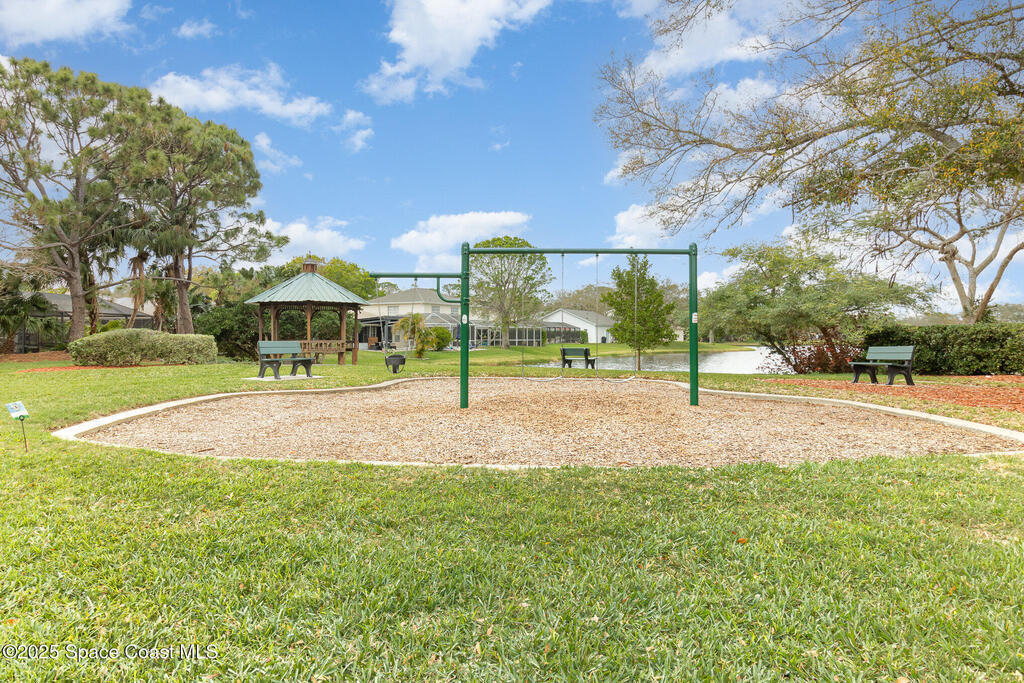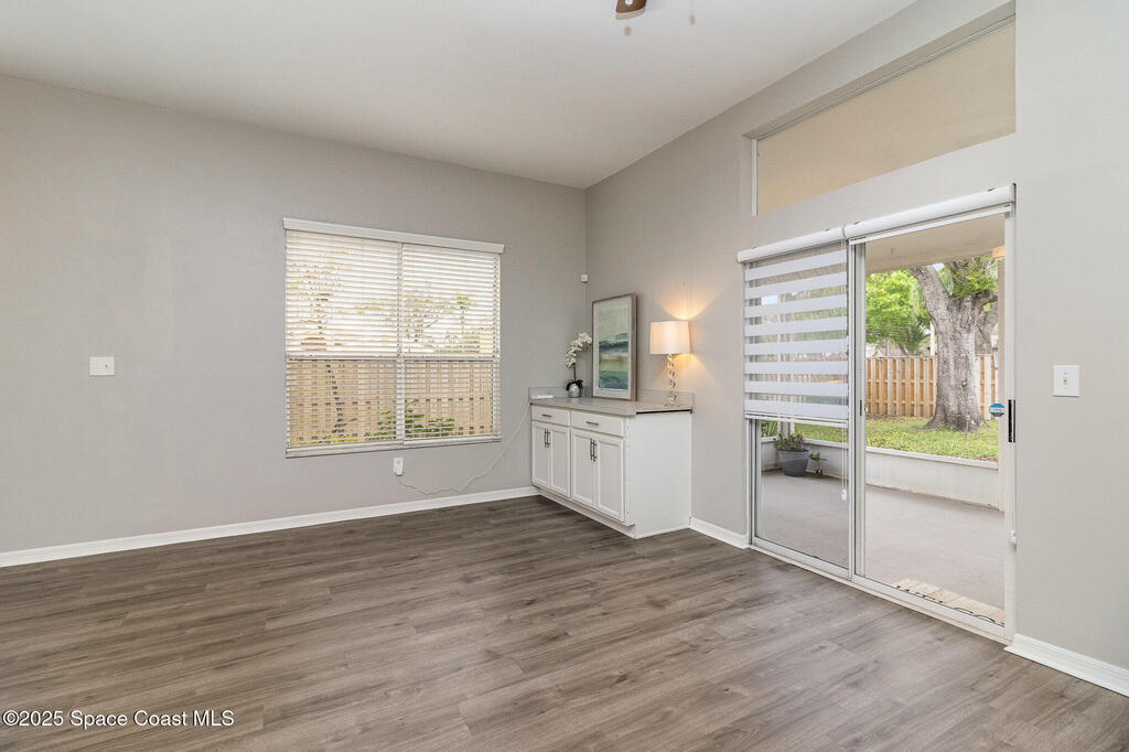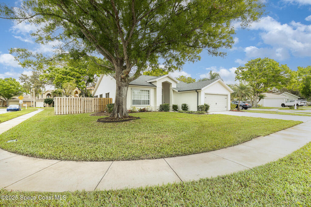 Beautifully updated 3BR/2BA home located in the heart of Viera. This move-in-ready property features luxury vinyl plank flooring throughout, energy-efficient LED lighting, and a modern kitchen with stainless steel appliances, GAS RANGE, granite countertops, and stylish cabinetry. Both bathrooms have been fully renovated with updated vanities, tiled showers and floors, and new commodes.Enjoy a private, fenced backyard with a wood deck and party lights--perfect for entertaining or relaxing outdoors. Additional features include an indoor laundry area with washer and dryer included, EV plug in the garage, Ring doorbell, and an optional alarm system. Lawn care is included. Owner will consider one small dog.Community amenities include a park at the entrance and a walking trail leading to Woodside Park and Pieloch Dog Park. Conveniently located near shopping, dining, major highways, and the beaches. Don't miss this exceptional Viera home