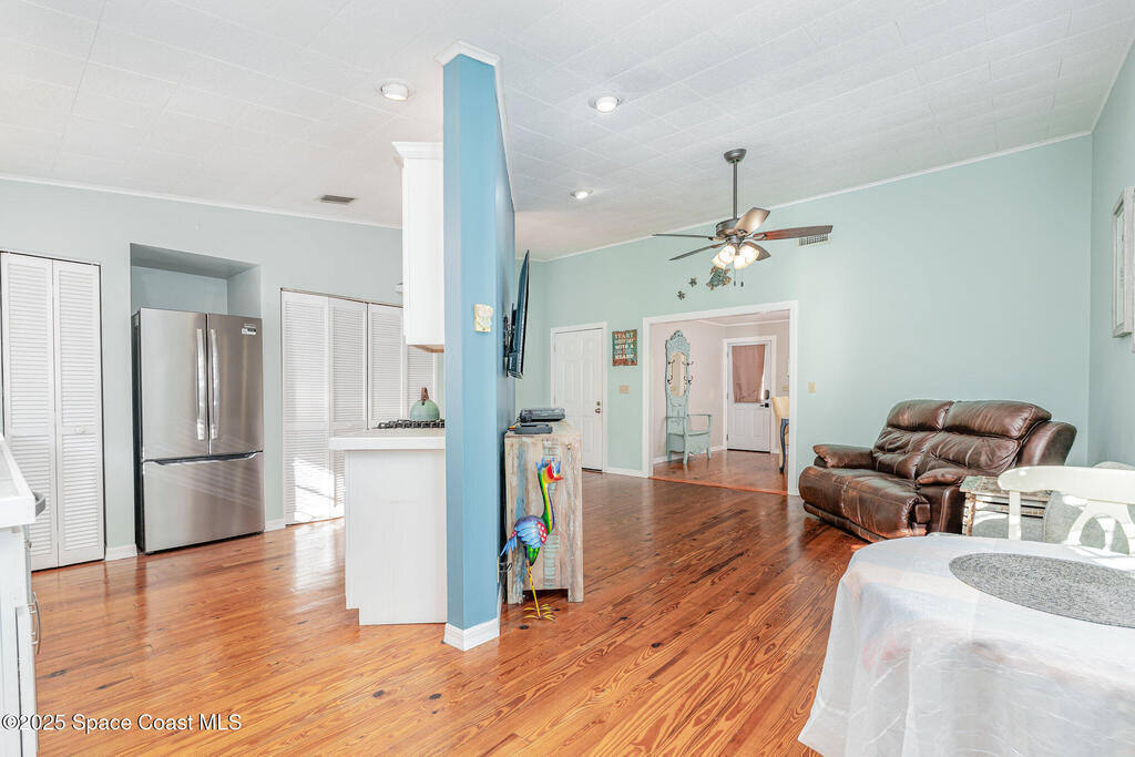 Beautiful 3 Bedroom, 2.5 Bathroom Home Near Historic Downtown Melbourne, FL - Quick Move-In Before The Holidays! Location meets charm in this well-maintained Melbourne home, just minutes from downtown restaurants, shops, arts, and Brevard's beaches. Natural wood floors flow throughout the spacious living areas. A separate dining room is perfect for family meals or entertaining guests, while the updated kitchen features white cabinetry, subway tile backsplash, stainless steel appliances, and a gas range, plus a cozy breakfast nook. The split-bedroom layout offers privacy, and the primary suite includes large windows and a walk-in closet. Step outside to your private backyard oasis with a spacious paver patio, ideal for outdoor dining, lounging, or barbecues, plus a storage shed for extras. This move-in ready home is a must-see for anyone searching for a Melbourne FL home with modern updates, character, and convenient location. Schedule your private showing today!