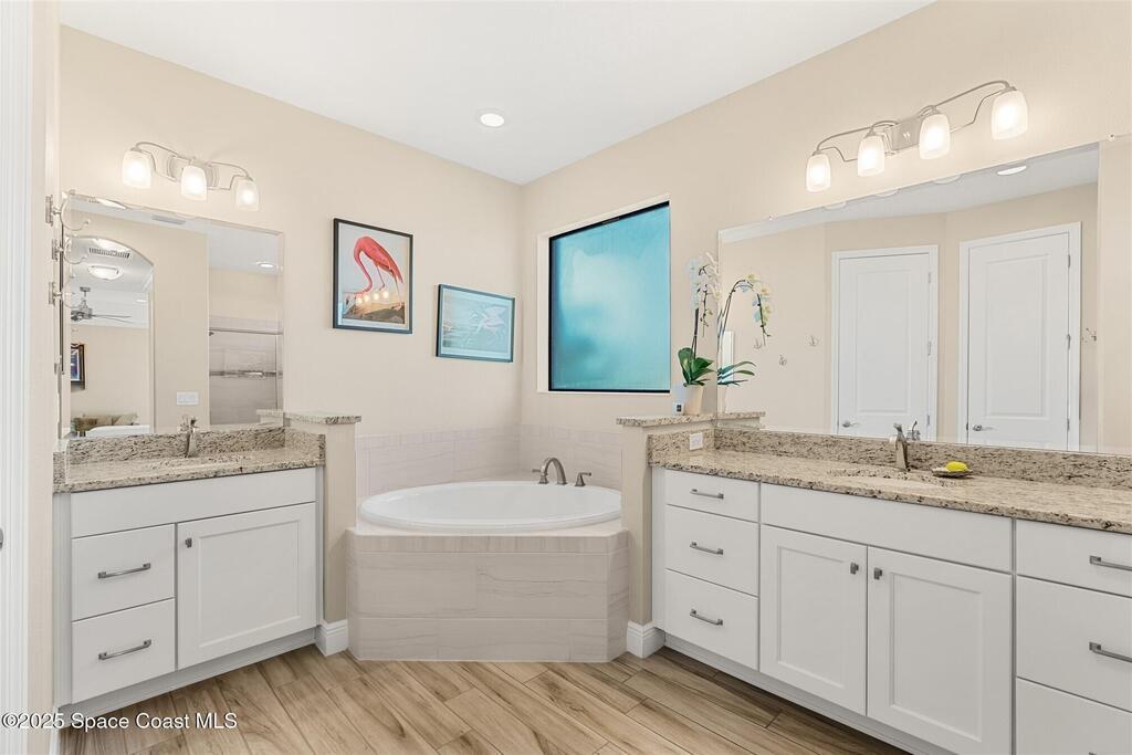 Breakfast Bar , Ceiling Fan(s) , Entrance Foyer , His and Hers Closets , Open Floorplan , Primary Bathroom -Tub with Separate Shower , Primary Downstairs , Split Bedrooms , Walk-In Closet(s)