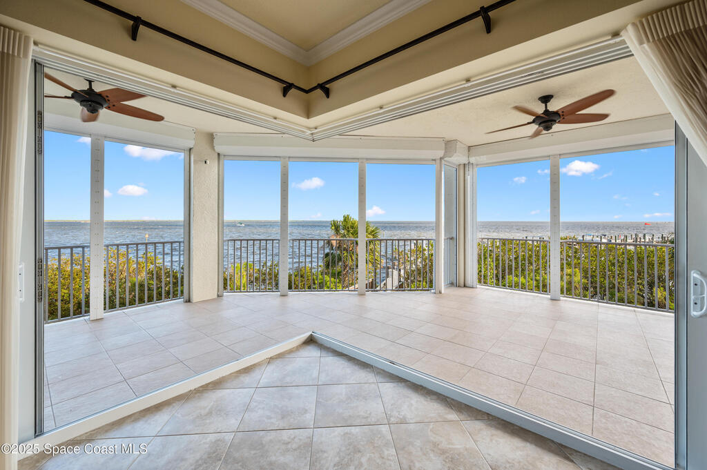 FRONT-ROW LAUNCH VIEWS!TWO PRIVATE GARAGES AND A BOAT SLIP! You've come to Paradise!! This beautiful Condominium has the feel of a private home! With over 3900 sq ft of living space, and balconies on every side, you won't miss a Sunrise or Sunset! They can both be captured in panoramic views! All of the windows and doors have been updated with Hurricane warranties. The Marina, which is attached to the community, has one boat slip deeded to this unit. Watch the dolphin, manatees, and active sea life perform their daily rituals. This spacious unit boasts 3 large bedrooms each with its own ensuite bath, a study, and 1/2 bath, it has areas for a multi-family entertaining ability. There are 2 single garages, storage unit & boat slip included.15 minutes to the Beach, 35 minutes to Airport, with shopping & restaurants in walking distance