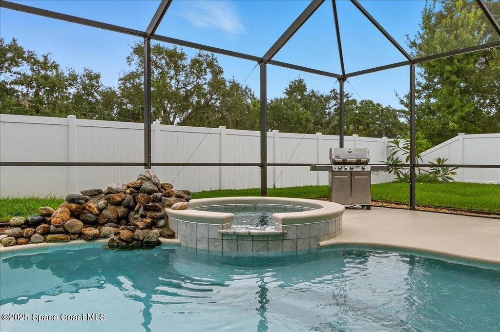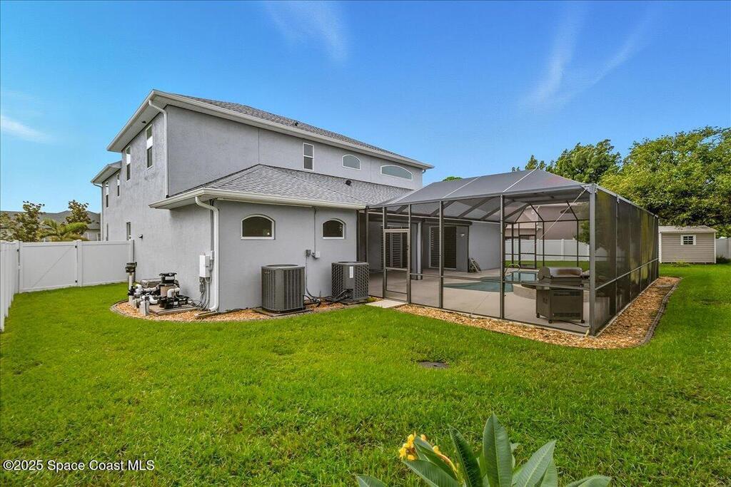 Nestled in a Gated Community, this Stunning Pool Home offers a perfect blend of style, comfort, and functionality. Step inside and be greeted by a fresh and vibrant interior. Fabulous kitchen offers a huge pantry, gleaming appliances, granite, wood cabinets and a breakfast bar that opens to the relaxing family room. Enjoy additional entertainment space on your 1300+ sq.ft. screened lanai! The backyard oasis includes a privacy fence, shed, gas grill - don't forget the heated pool and spa! Unique floorplan, perfect for multi-generational living! Luxurious, 1st floor primary bedroom offers dual sinks, quartz, walk in shower, soaking tub, custom closets & blinds. Your private office is right around the corner. A gorgeous wood staircase leads to 4 bedrooms & 2 full baths. The spacious loft makes an ideal game room -for any age! All Major Systems - Roof, AC, HW & Windows have recently been updated providing peace of mind for years to come!