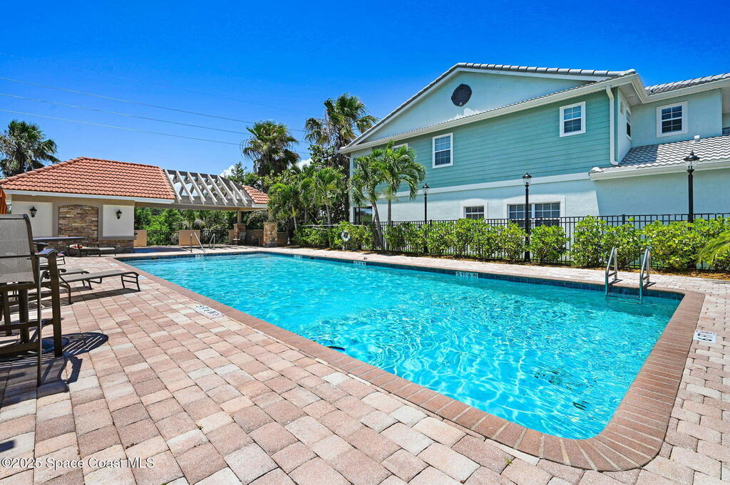 For RENT: Centrally Located Light, bright, and move-in ready! This charming end unit townhome is nestled in the gated community of Riverwalk of Melbourne. Enjoy resort-style living with access to a community pool, spa, sauna, fitness center, playground, clubhouse, and more! Inside, you'll love the open concept layout with TILE flooring downstairs and carpet only upstairs. The updated kitchen features 42'' solid wood cabinets, granite countertops, stainless steel appliances, and a stylish backsplash. Sip your morning coffee on the cozy screened-in porch. Upstairs offers a spacious primary suite with walk-in closet, dual vanities, granite counters, and walk-in shower. Two more bedrooms, a full bath with shower/tub combination, and a laundry closet with stackable washer/dryer complete the space. A 2-car garage and extra storage add convenience. Rent includes water, sewer, trash, internet, basic cable, and landscaping! All just minutes to major employers, EGAD, and beaches. Must see!
