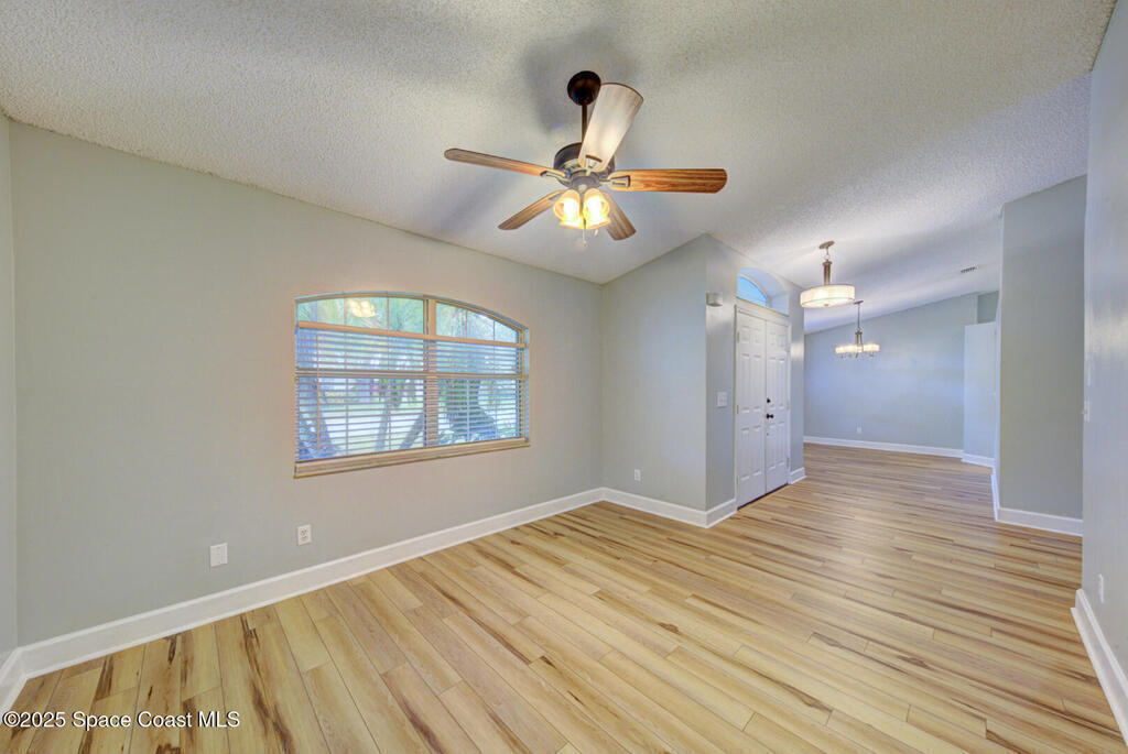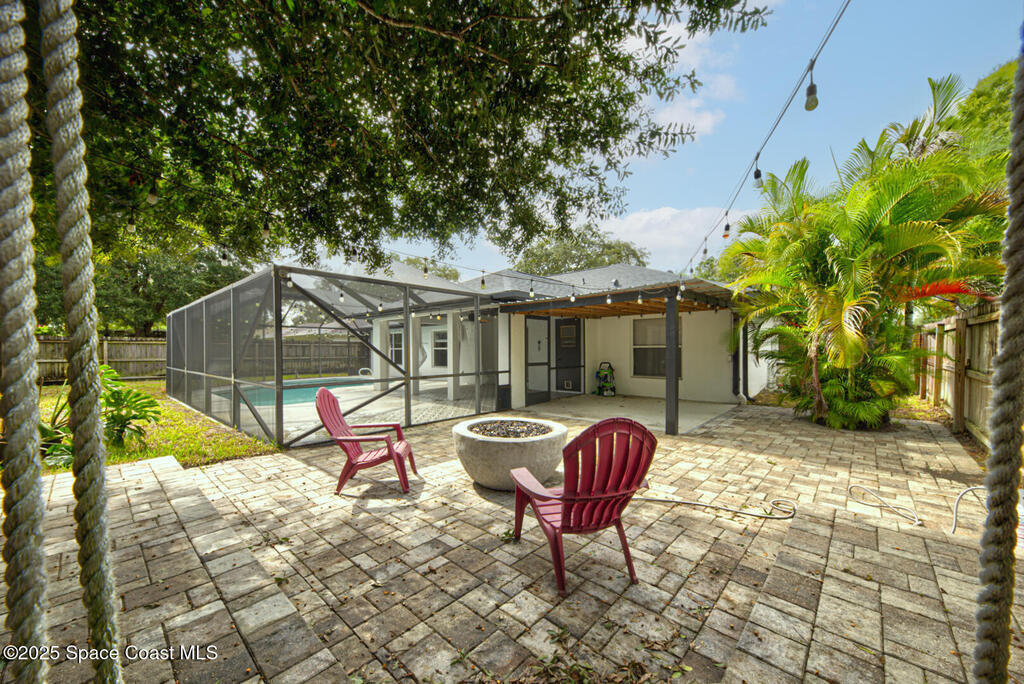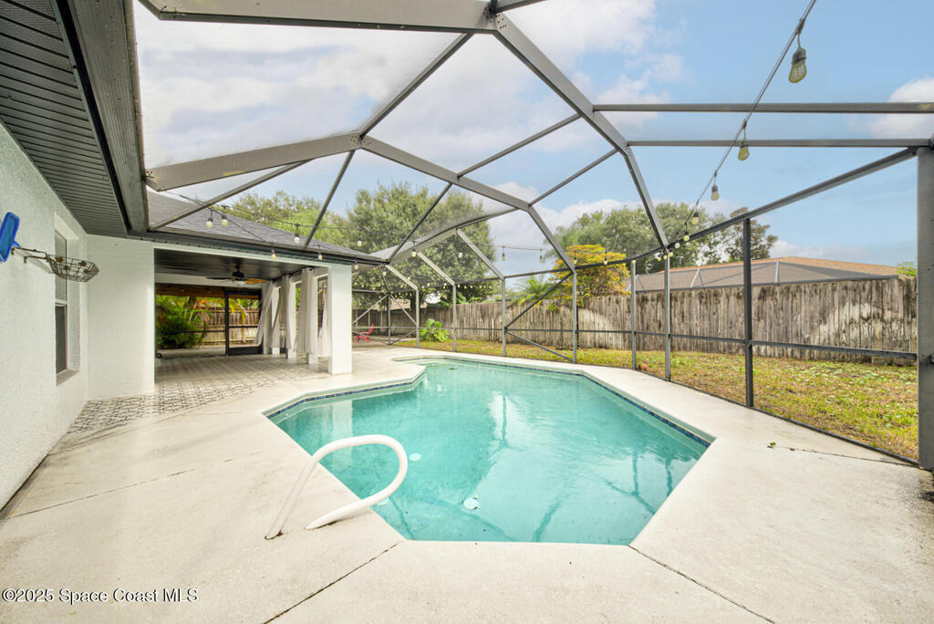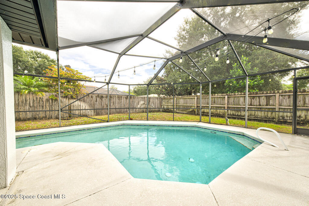 Welcome to this beautiful 3-bedroom, 2-bath pool home nestled in a well-established neighborhood. Additionally, this home has a VA assumable loan of 2.75% for those who qualify. This home was designed with comfort and versatility in mind, the open floor plan offers both formal and informal living areas, a formal dining space, and a convenient breakfast bar. The flexible layout allows for multiple uses to suit your lifestyle. Enjoy waterproof laminate flooring throughout the main living areas and a spacious master suite with an oversized walk-in closet. The kitchen features granite countertops and abundant cabinet space, that opens onto the family room. A large laundry room and 2-car garage add practicality and convenience. Step outside to a covered patio perfect for entertaining, overlooking a screened-in pool. The fully fenced backyard ensures privacy for family and pets. With a brand-new roof (2025) and a prime location near US 1, I-95, Melbourne Airport, Patrick Space Force Base,
