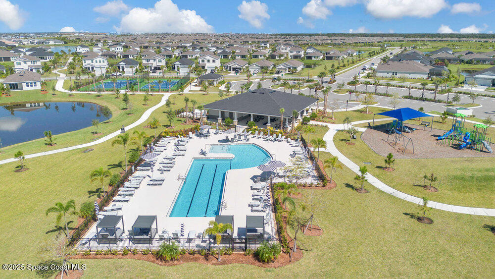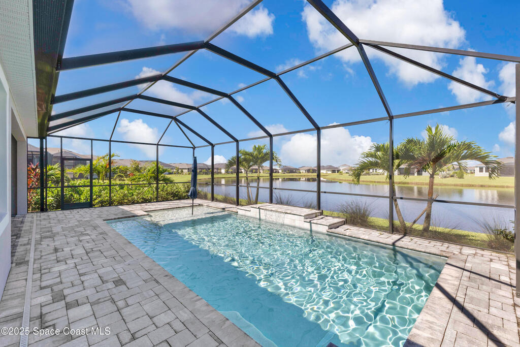 Experience luxurious Viera living in this stunning 4-bedroom pool home, complete with a versatile flex room. Enjoy spectacular sunsets from your private backyard oasis, featuring a sparkling pool perfect for relaxing or entertaining. The gourmet kitchen is a chef's dream, showcasing premium finishes, a gas stove, stainless steel appliances, and beautiful quartz countertops. Elegant upgraded lighting and designer hardware add a modern touch throughout. Enjoy peace of mind with impact-resistant windows, and a low-maintenance lifestyle with lawn care included in the HOA fee. An open-concept design with natural light fills the spacious living areas. The large master suite offers serene lake views, a huge walk-in closet, and a double-sink walk-in shower. Outside, a beautifully landscaped yard enhances the curb appeal. Located near top-rated schools, premier shopping, and dining, this home is a gem in one of Viera's most sought-after communities.