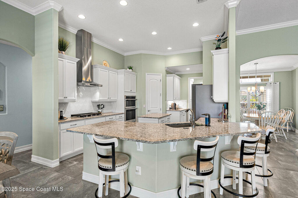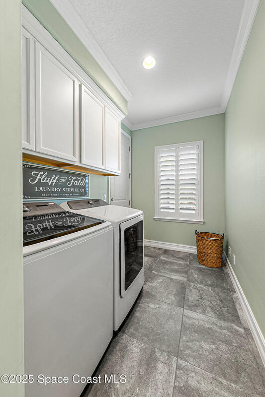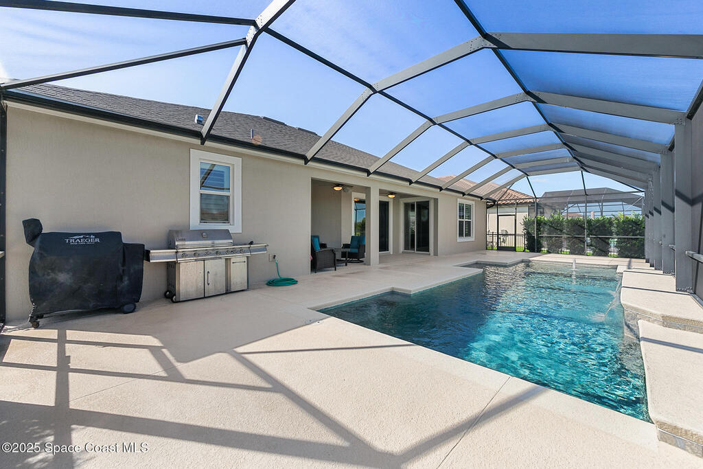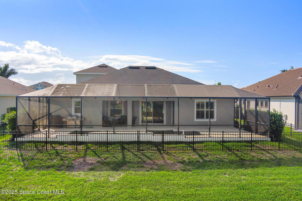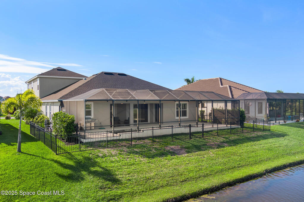 This lakefront pool home is in the heart of Viera, and once the model for the neighborhood. Located behind the gates of the Stonecrest subdivision which is less than 1 mile from I-95 and in the heart of and in Brevard's premier school district. This gorgeous 5 bedroom, 4 bathroom lake front home is LOADED with extras. This spacious gourmet kitchen has a gas stove. IMPACT WINDOWS throughout home. The garage is air conditioned with a separate workspace/office (the living sq ft doesn't include the garage). The outdoor living has a large porch & screened pool with tranquil waterfront views. The floor plan is well versed with office/den in the front of home plus a HUGE bonus room bath and the 5th bedroom on the second level. This golf cart friendly subdivision has a community pool, exquisite clubhouse, multiple pickleball and tennis courts and even a shaded playground with many walking paths to venture along. Home is turnkey, and ready for a new family for immediate occupancy.
