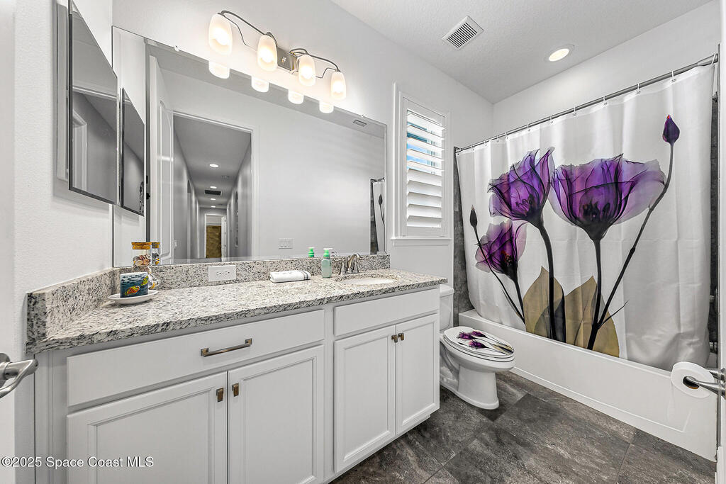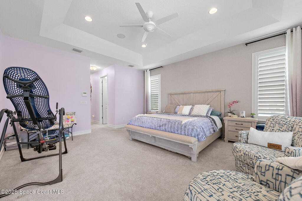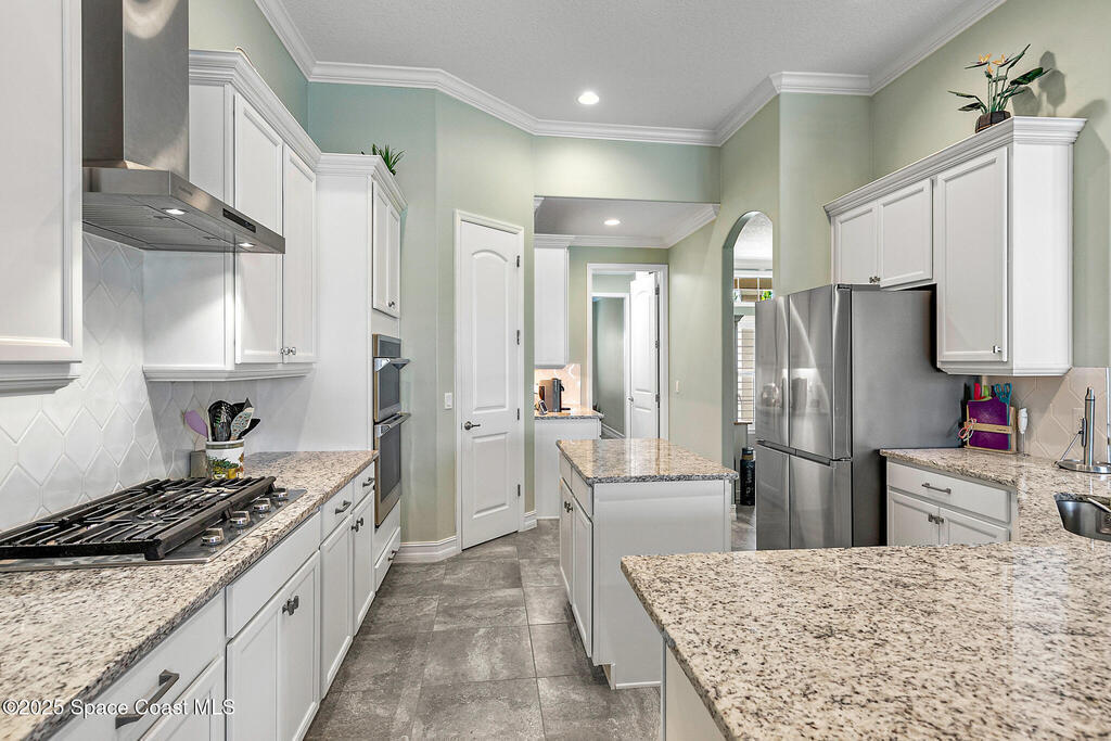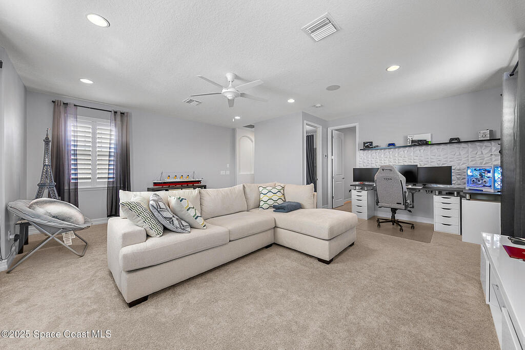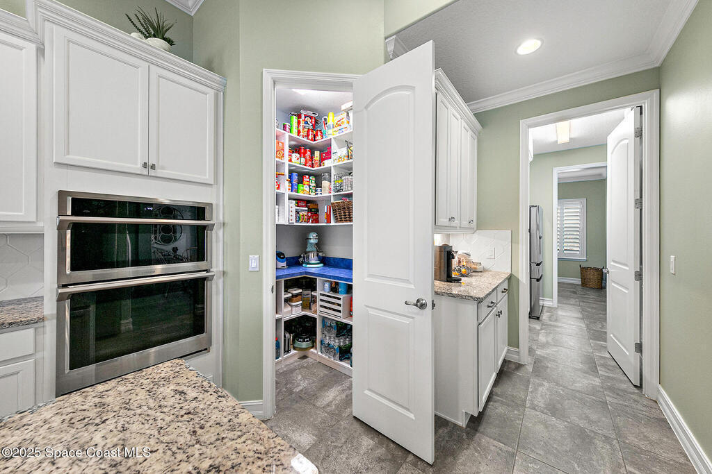 This lakefront pool home is in the heart of Viera, and once the model for the neighborhood. Located behind the gates of the Stonecrest subdivision which is less than 1 mile from I-95 and in the heart of and in Brevard's premier school district. This gorgeous 5 bedroom, 4 bathroom lake front home is LOADED with extras. This spacious gourmet kitchen has a gas stove. IMPACT WINDOWS throughout home. The garage is air conditioned with a separate workspace/office (the living sq ft doesn't include the garage). The outdoor living has a large porch & screened pool with tranquil waterfront views. The floor plan is well versed with office/den in the front of home plus a HUGE bonus room bath and the 5th bedroom on the second level. This golf cart friendly subdivision has a community pool, exquisite clubhouse, multiple pickleball and tennis courts and even a shaded playground with many walking paths to venture along. Home is turnkey, and ready for a new family for immediate occupancy.