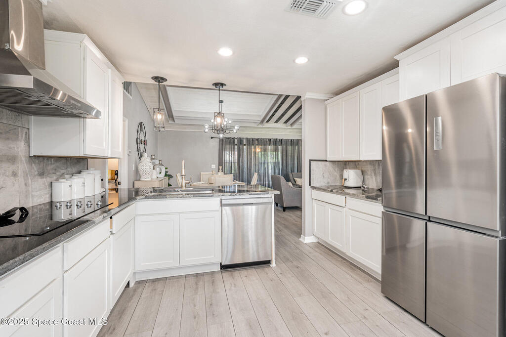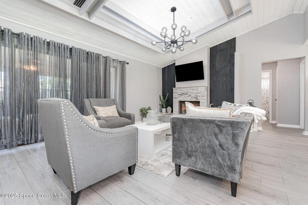 This beautifully remodeled Palm Bay home perfectly combines modern upgrades with everyday comfort in an unbeatable location close to shopping, dining, and daily conveniences. Step inside to discover an inviting open layout featuring a stunning kitchen with granite countertops, all-new stainless steel appliances, and stylish finishes that make it the heart of the home. The spacious living area includes a cozy fireplace that adds warmth and charm, ideal for relaxing evenings or entertaining guests. The luxurious main bathroom offers a large soaking tub, light-up mirrors, and elegant designer touches, creating a true spa-like retreat. Every detail has been thoughtfully updated with fresh paint, new flooring, and modern fixtures throughout. To top it all off, the seller will install a brand-new roof before closing and allow the buyer to choose their preferred shingle color. This move-in-ready gem truly stands out--come see it today!