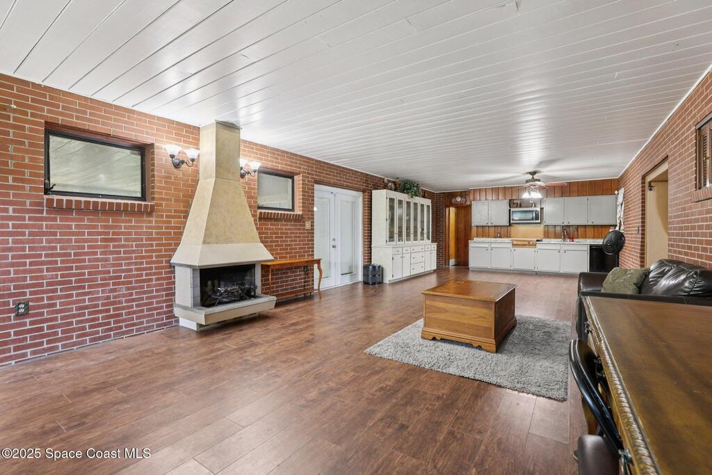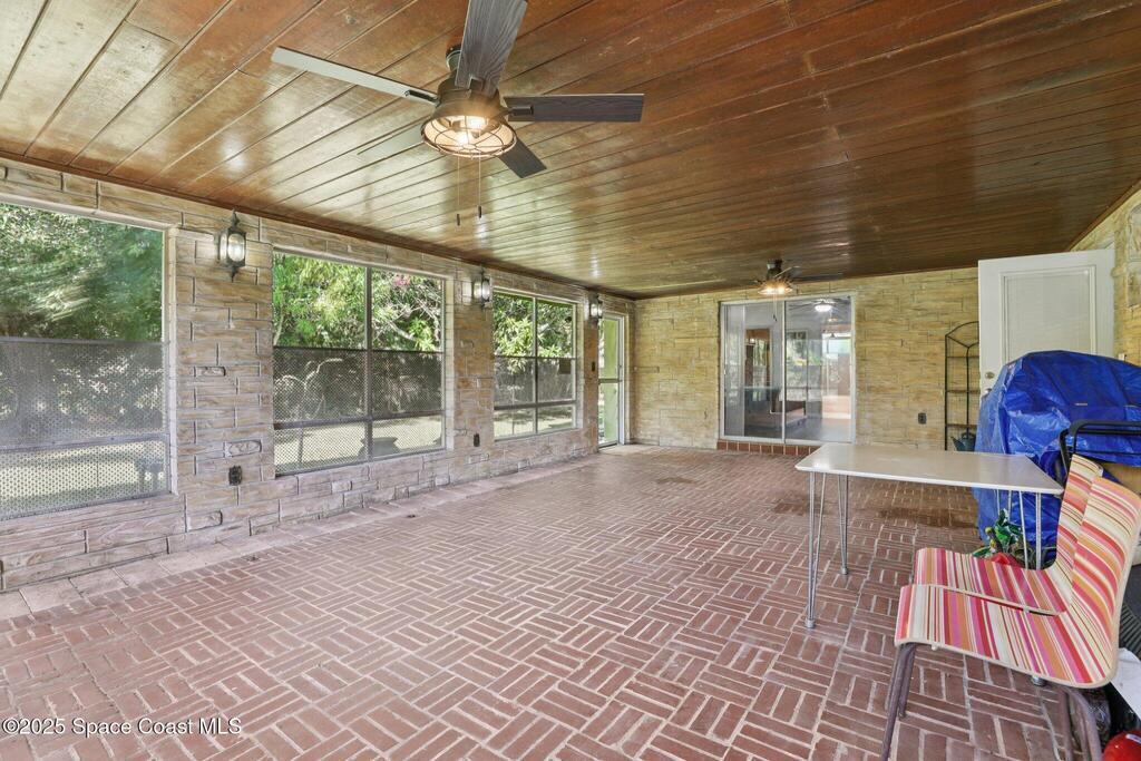 Spacious 4-bedroom, 3-bath concrete block home offering 2,088 square feet of living space on a 0.2-acre lot. This unique property features a flexible floor plan with a primary kitchen plus hookups for a secondary kitchenette--perfect for multi-generational living or guest accommodations. The roof is approximately 5 years old, and recent updates include a new electrical panel and durable laminate flooring throughout. Enjoy energy savings with window A/C units that allow for cooling specific areas as needed. The home also includes a one-car garage, a double-wide driveway, and an additional bonus room (not under A/C) connected to the laundry area, offering even more versatility. Step outside to a large screened lanai overlooking a spacious backyard filled with mature, productive fruit trees. Floor plan available upon request.