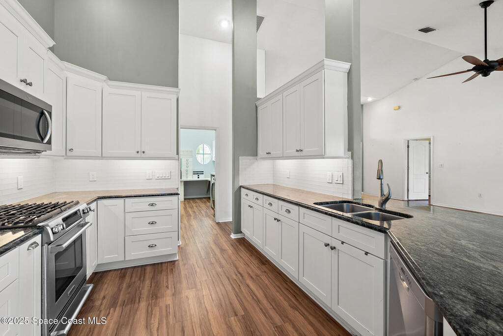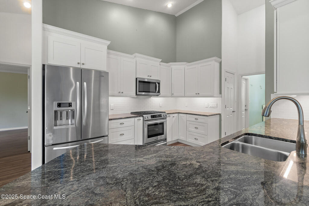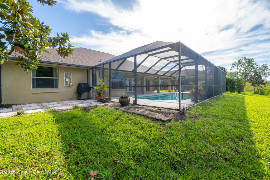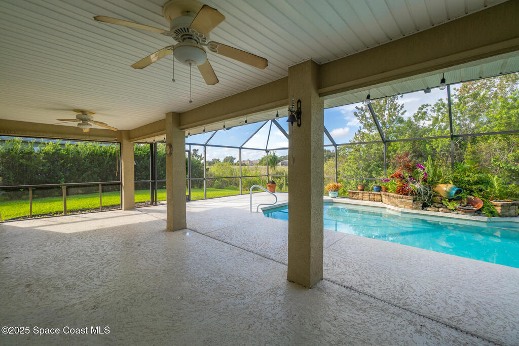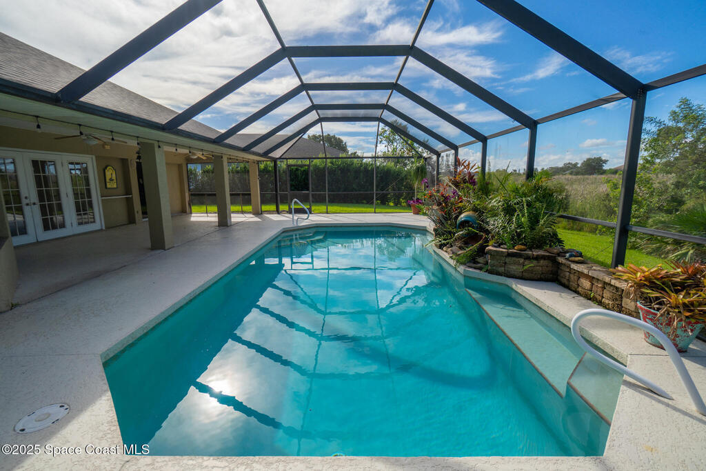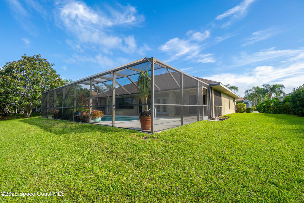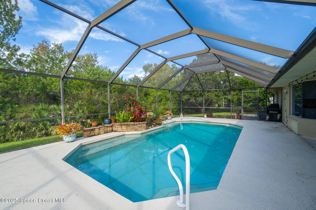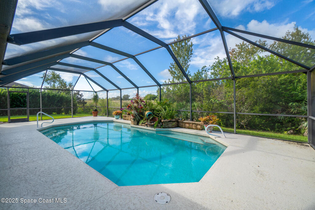 NEW hot water heater & newly resurfaced POOL at this beautiful Suntree home nestled beside a protected preserve. You will love the peaceful views & lush yard that flow seamlessly to your sparkling pool & covered lanai--ideal for year-round outdoor living. Step inside to an updated kitchen featuring granite countertops, classic white shaker cabinets, a subway tile backsplash & stainless appliances. The spacious laundry room, just off the kitchen, provides extra storage, a folding counter, and a built-in desk for convenience. The guest bath impresses with double granite sinks & direct access to the pool. Retreat to the expansive primary suite, complete with a soaking tub, tiled walk-in shower, dual closets (including a spacious walk-in) & direct lanai access. With a new 2024 roof, you'll enjoy lasting peace of mind. Located in the popular Suntree area--close to parks, shops, restaurants, golf & just 10 minutes from Melbourne's pristine beaches--this home is ready for you!