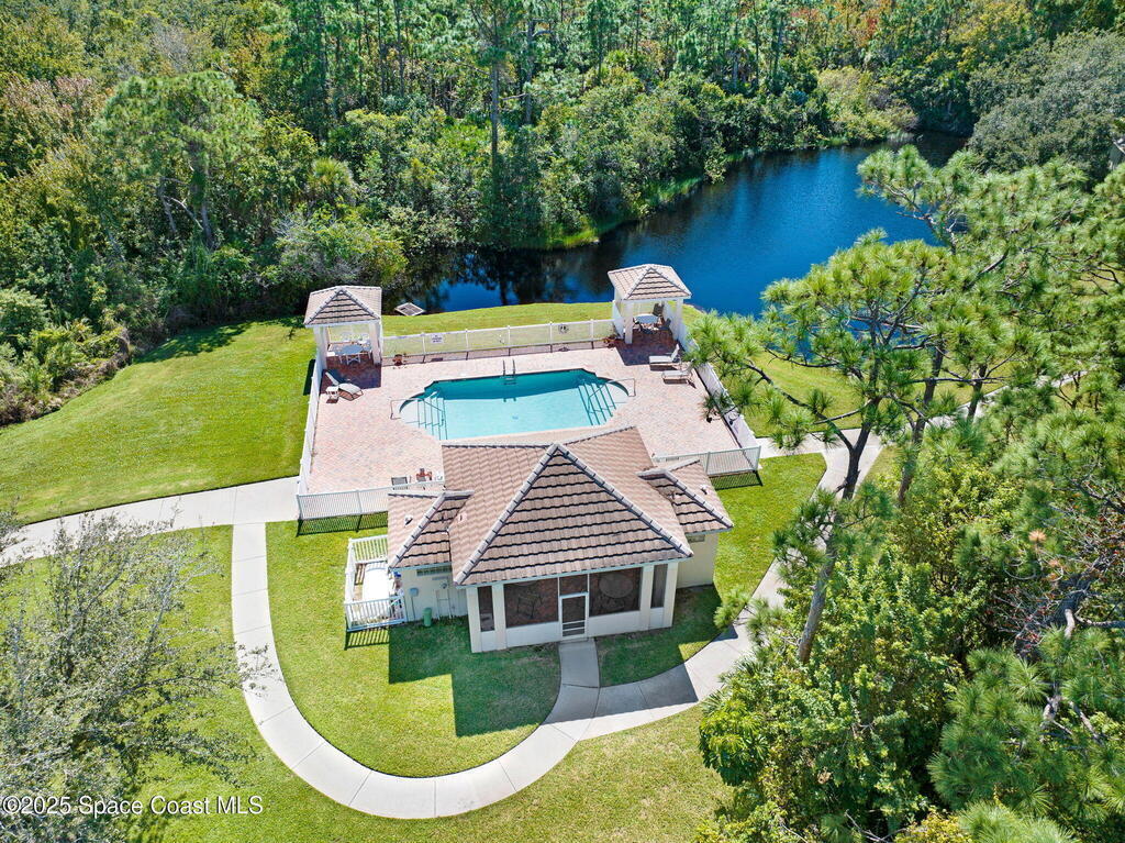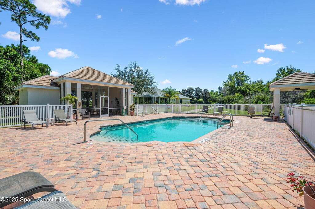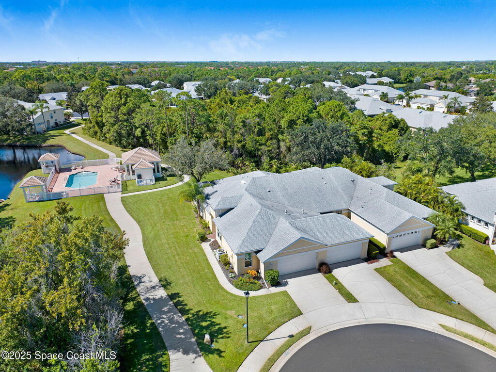 Huge price changed for a quick sale! Welcome to the gated community of Magnolia Pointe. This 2 Bedroom 2 Bath unit next to the last one towards the end of the cul-de-sac, steps to the community pool. The huge eat-in kitchen features an island, abundant cabinetry, cozy breakfast nook. Retreat to the spacious Primary Bedroom boasting dual closets plus + extra linen closet. The main bath features a garden soaking tub, separate shower, vanity with double sinks. Vaulted ceilings, skylight, recently rescreened lanai, accordion shutters at the front door and in the back, 2012 A/C, 2020 Hot Water Heater, Laundry with washer and dryer. TRUE WORRY-FREE LIVING! Solid concrete block construction and 2017 Roof provide superior durability. The comprehensive HOA fee is incredible value, covering the roof, exterior paint, lawn/irrigation, termites, pool, + exterior insurance! Minutes to shopping, dining, Viera Hospital, parks, A-rated schools, and a short drive to the beautiful Space Coast beaches.