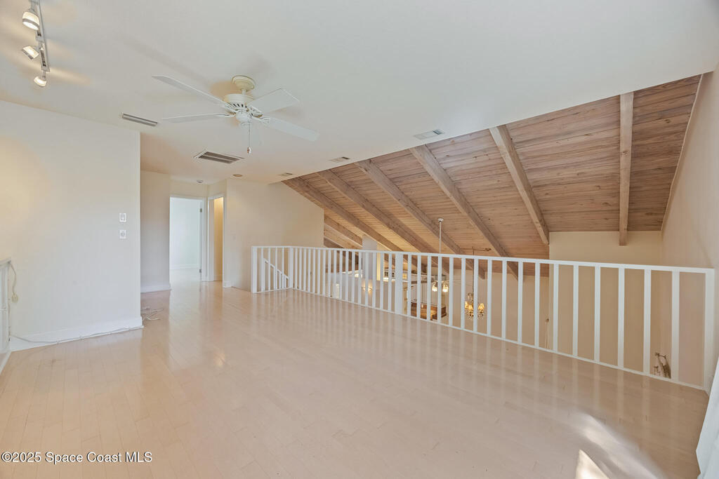 Lovely chalet style townhome in Quail Village! Prime corner lot & end unit for extra sqft, land and privacy. Many updates throughout including all new water lines, newer kitchen & bathrooms, freshly painted, & generator hook up ready. All hard wood floors in living areas & tile baths. Features a large downstairs primary bedroom with additional study/lounge room, dual sinks, walk in closet & shower. Upstairs features a full bath w/ jacuzzi tub, bedroom, office nook, and a huge loft with built in bookcases overlooking the downstairs with beautiful cathedral style ceilings & large deck out back for sunbathing. The loft could even be enclosed into a large 3rd bedroom suite if needed. The association has a nice community pool around the corner and takes care of the lawn mowing. Excellent location, very close to Wickham Park and all major amenities. Much to see on this one, come by today!