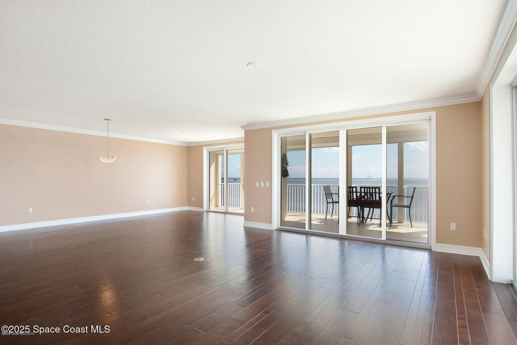 The immaculate corner unit condo has a view like no other. Situated on the south side of the building the wrap around balcony offers breath taking water views. Watch rocket launches from the comfort of your home and spend the evenings enjoying the breeze.