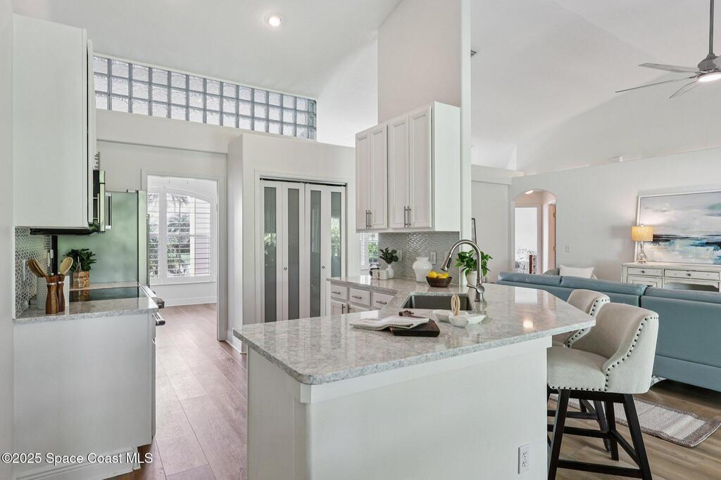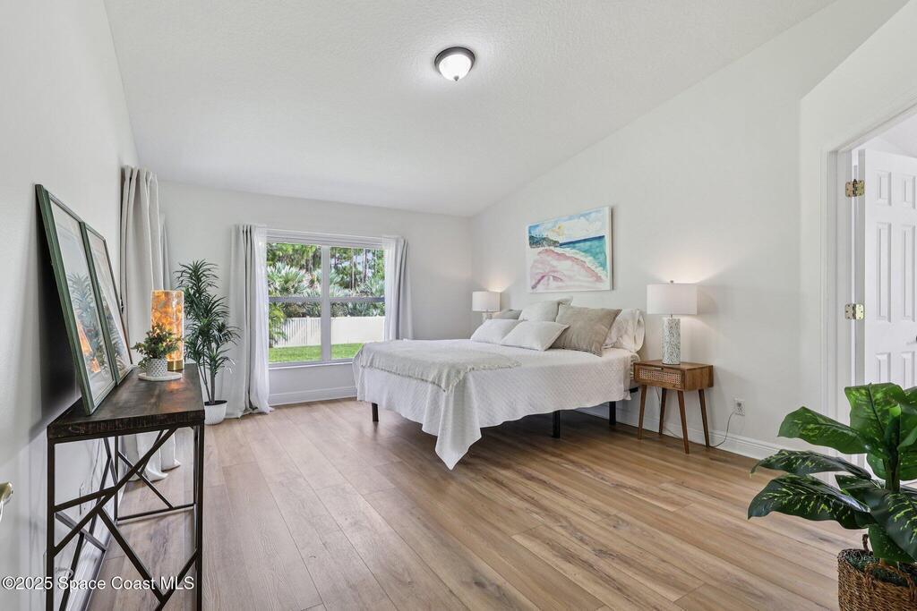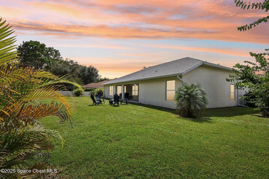 This beautifully updated four-bedroom, three-bathroom home is in the desirable gated community of Bayside Lakes, situated on a spacious, private corner lot that backs onto a serene preserve. Featuring a dedicated office and a flexible bonus room, the open split floor plan with high ceilings showcases lush landscaping. Renovated in 2023 with a new roof in 2024, the home includes luxury upgrades. The stunning kitchen boasts high-end appliances, elegant quartz countertops, and a coastal-inspired backsplash. The expansive primary suite offers a peaceful retreat with a walk-in closet, deep soaking tub, and separate shower. Additional highlights include updated flooring, a new 87-gallon water heater, custom shades, plantation shutters, and designer ceiling fans. Residents enjoy a tranquil environment with amenities like sidewalks, ponds, a clubhouse, pool, gym, tennis, basketball courts, and a playground -all conveniently located near I-95, Melbourne, and Space Coast beaches!