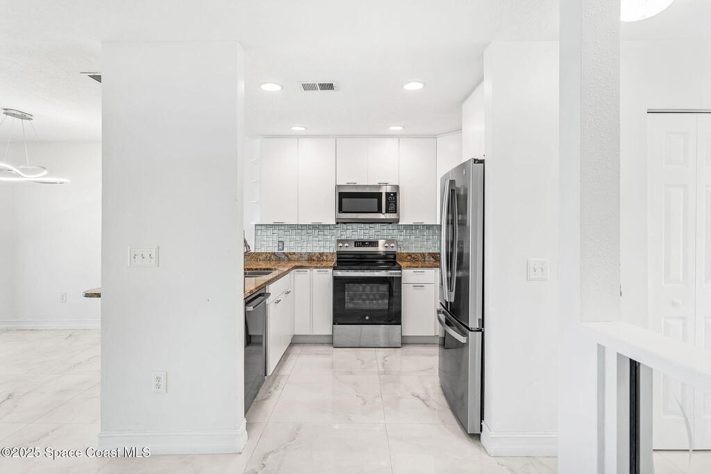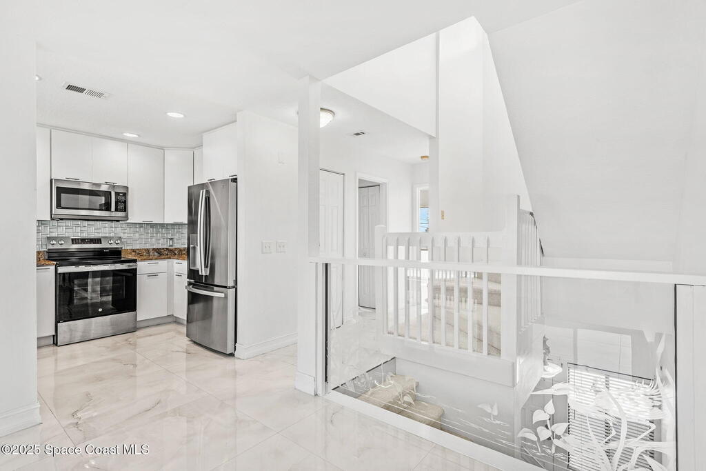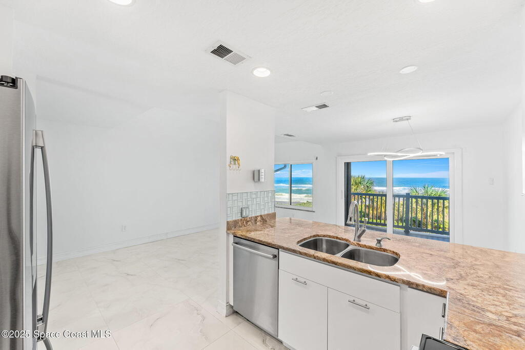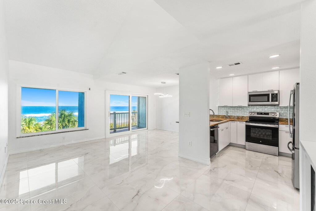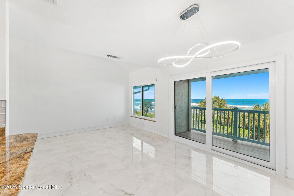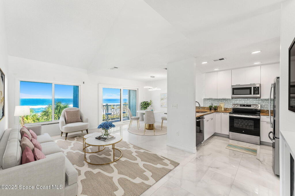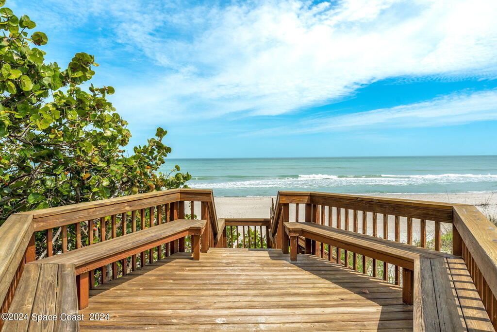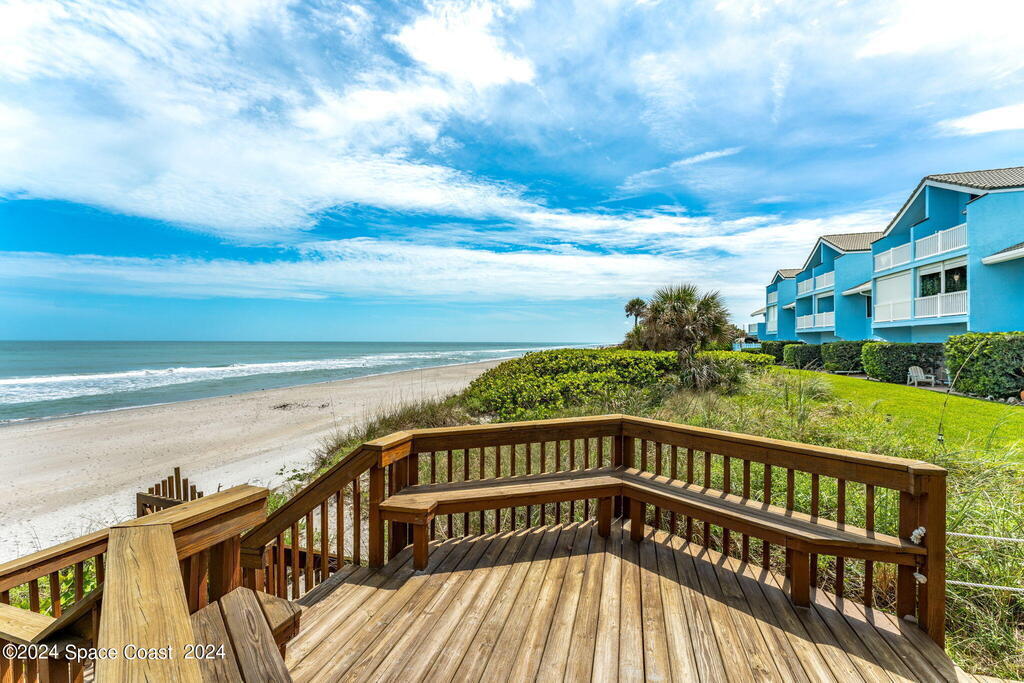 Live the good life from this 3 bed, direct Oceanfront townhome in a small, 10 owner complex with a heated, Ocean side pool & just minutes from all the amenities of 3 downtown areas. Brand new kitchen , including stainless appliances, epoxy coated garage floor, quality newer flooring & more! Split level design affords multiple perspectives of the Ocean out your back door and a nice separation of space when guests come to visit you in paradise. A private garage and deeded 2nd parking spot plus ample guest parking. Nearly right across the street from Spessard Holland Golf Course and miles of nature preserve beaches right out your back door! Dramatic 3rd floor primary suite features a vaulted ceiling, walk in closet, spacious walk-in shower and your own private balcony for launches, sun and moon rises, etc. A well run, low turnover association.. so get this one while you can. You'll never want to leave ! Call to schedule a private tour today..