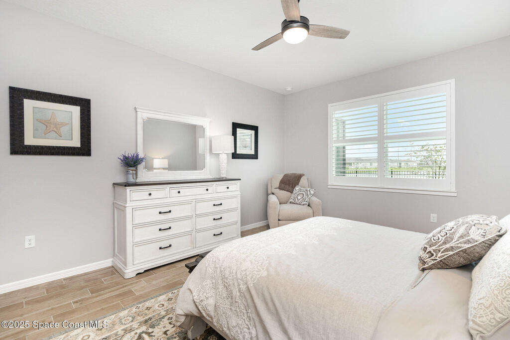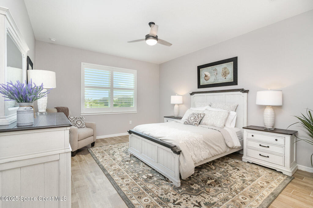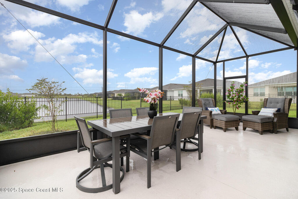 This stunning lakefront, oversized premium lot, 3Bed/2Bath. The enclosed Flex room perfect for a 3rd guest bedroom or office. This is a Del Webb Palmary model with amazing sunset and water views and is ready to move in & start enjoying life in an active resort-style community. Entertaining is easy with a large open concept gathering room with tray ceiling, kitchen with large island, and cafe. There is an extended screened lanai, electric hurricane impact screens, fenced yard with puppy picket, plantation shutters, designer window treatments & lighting fixtures. The 2-car garage was extended by 4ft & has epoxy flooring, upgraded laundry room has both upper and lower cabinets and a sink, built-in HMC outside laundry room. Cameras and security system are installed. Chef's kitchen has upgrades such as quartz countertops, stainless steel Whirlpool appliances, wood hood, upgraded sink/faucet, backsplash, under-cabinet lighting and so much more. Other upgrades include ceramic tile flooring