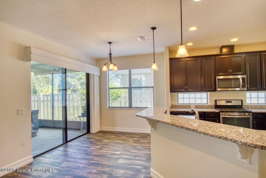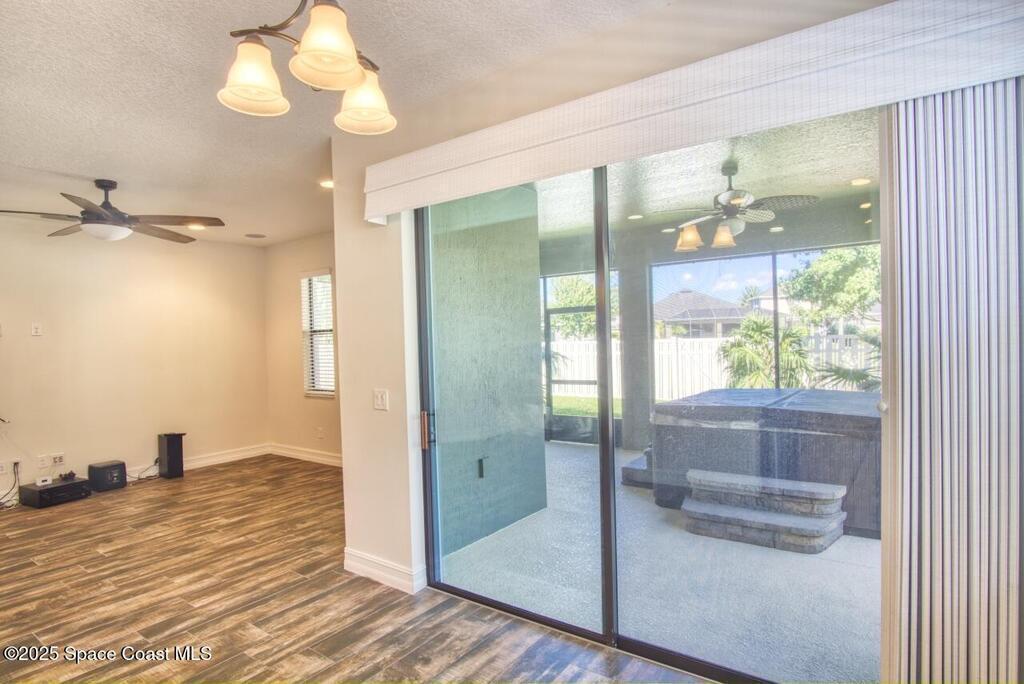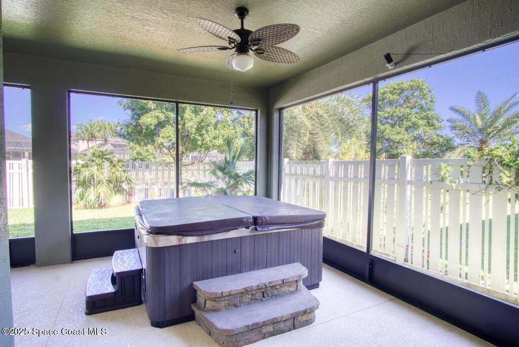 Immaculate 4-bedroom home with large kitchen, roomy primary en-suite with double vanities, soaking tub and walk in closets. You will also enjoy a large formal dining room and very large family room located off the kitchen. The screened lanai has a hot tub and plenty of room for furniture and decor of your liking. Durable vinyl flooring and for added convenience this property comes with washer and dryer which is located right off the kitchen. Granite counter tops, high ceilings and so much more.