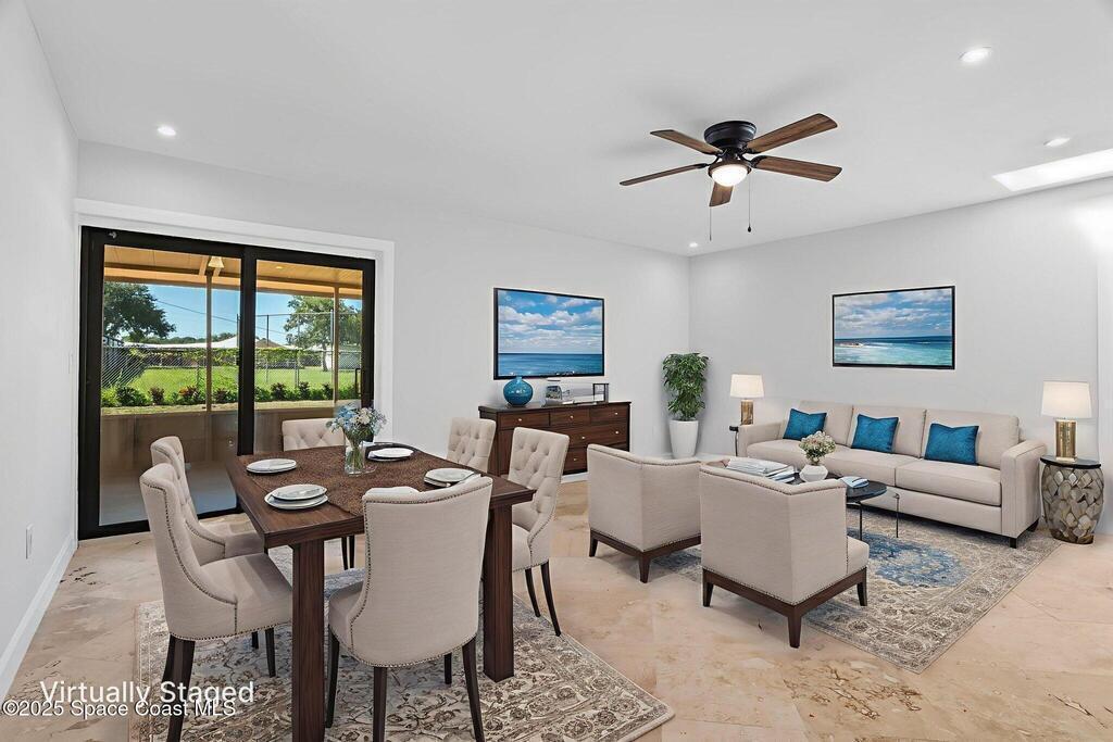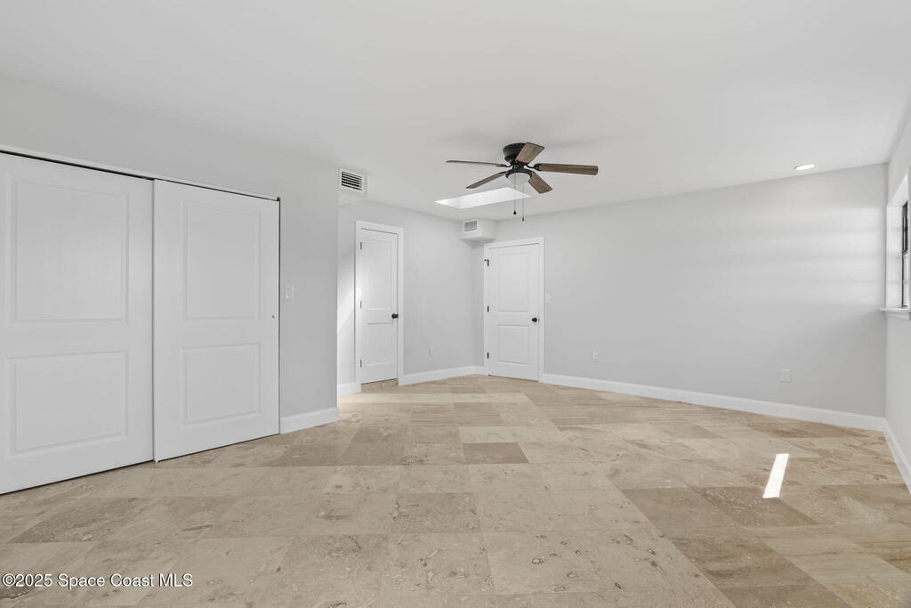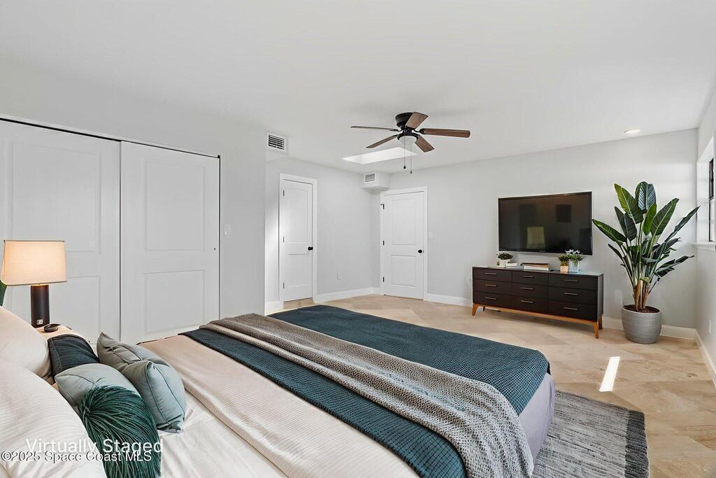 Completely remodeled from top to bottom, this beautifully updated 4-bedroom residence delivers. Every surface has been refreshed, every finish upgraded, creating a home that feels brand new yet instantly welcoming. Curb appeal with lush new sod, professional landscaping, and a freshly painted exterior. Solar panels (approx. 5 years), newer AC (5 years), and a 1-year-old water heater. The extended driveway and 1 car garage offer plenty of parking, while the upgraded irrigation system keeps the vibrant lawn picture-perfect year-round. Inside, you're greeted by a bright, open design filled with natural light from multiple skylights. The all-new tile flooring flows seamlessly through the living spaces, complementing soft neutral tones and updated fixtures. The kitchen shines with new countertops, stainless steel appliances, and hardware, while both bathrooms feature designer tile, new vanities, and modern lighting. The enormous 21 x 16'4'' master bedroom provides a true