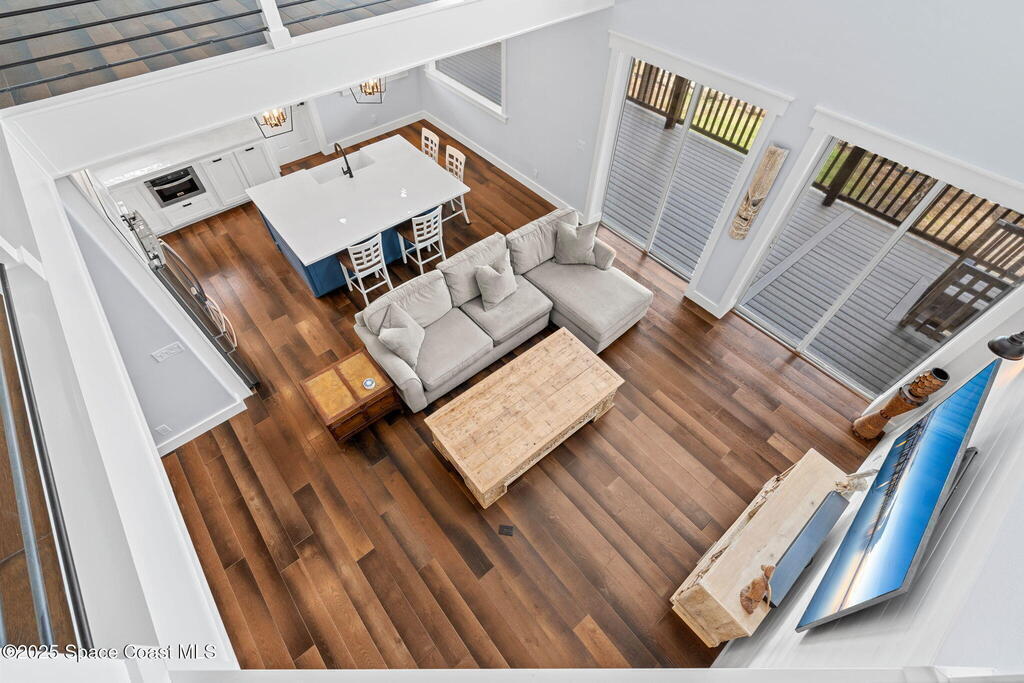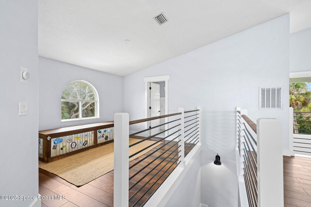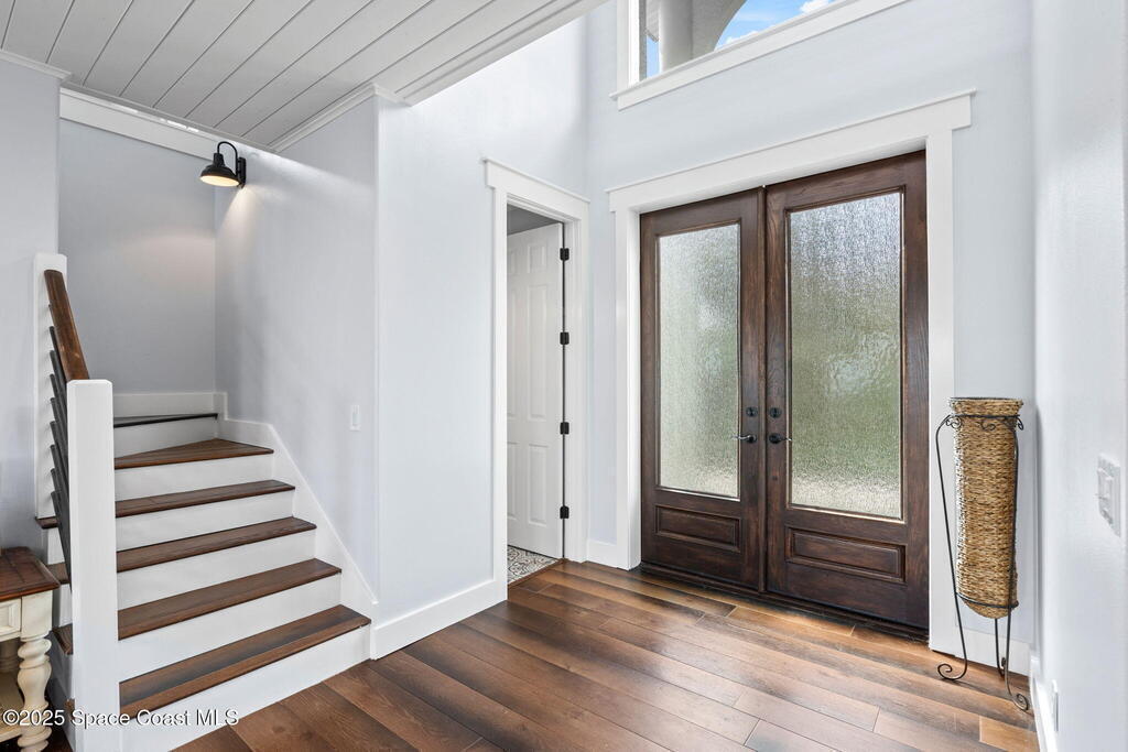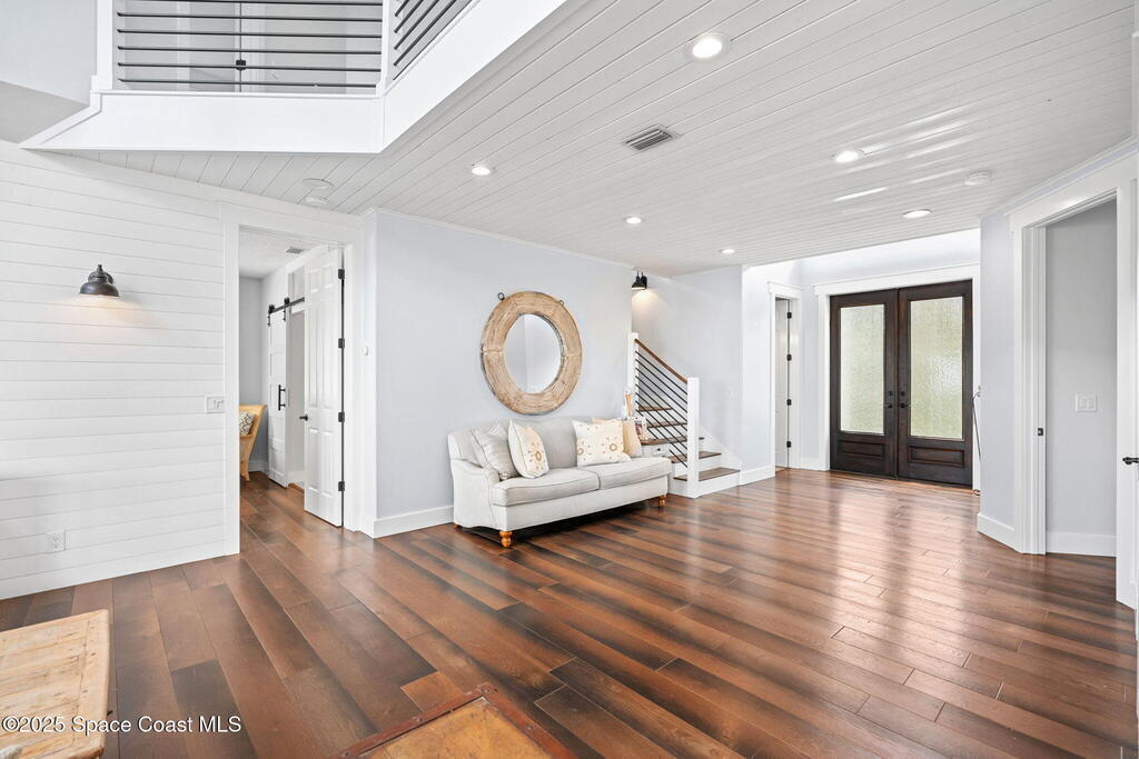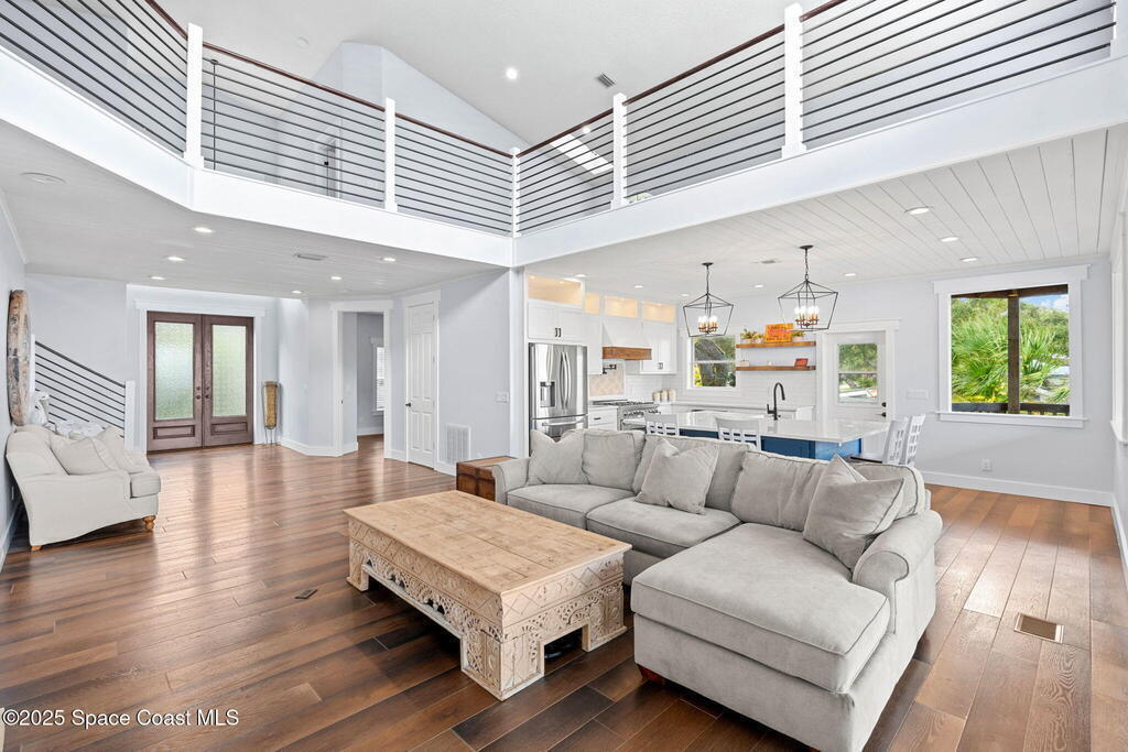 Welcome to your dream waterfront escape -- a beautifully remodeled three-story coastal chic home with endless views of the River. From the moment you arrive, you'll feel the serenity of lush palm trees, privacy, and the perfect blend of modern comfort and timeless Florida charm. Inside, the thoughtful layout maximizes both function and flow. The main living level features a spacious open concept with a master suite and an office or guest bedroom, perfectly positioned to capture the river breeze and incredible sunrise views. Below, a massive garage and unfinished workspace offer endless potential -- finish it under air to create an additional 500 sq. ft. of living space, ideal for a gym, recreation room, or social lounge. Upstairs, two more bedrooms and a full bath open to a private balcony overlooking the dock and boat lift -- your front-row seat to the river life. Morning coffee, evening cocktails, or spontaneous boat days -- it's all right outside your door.