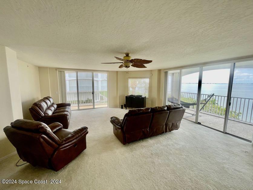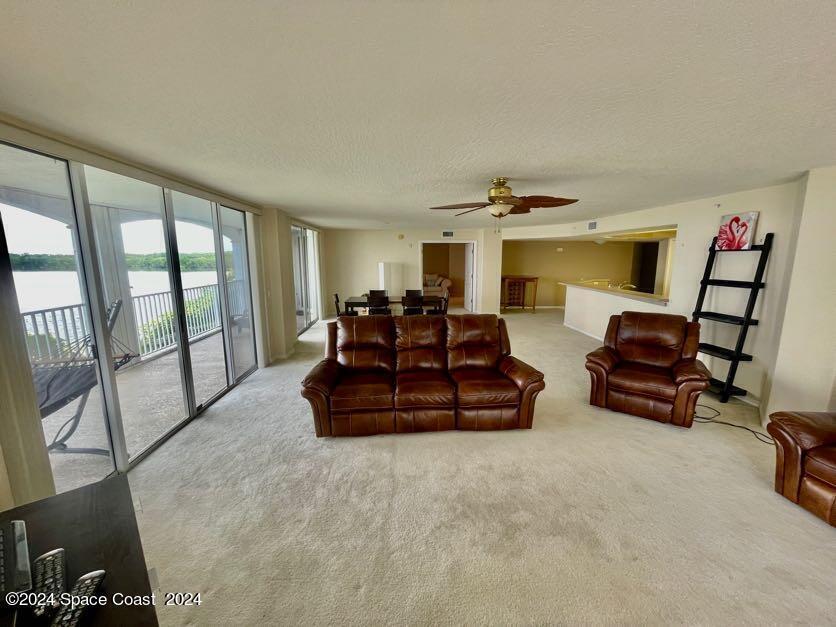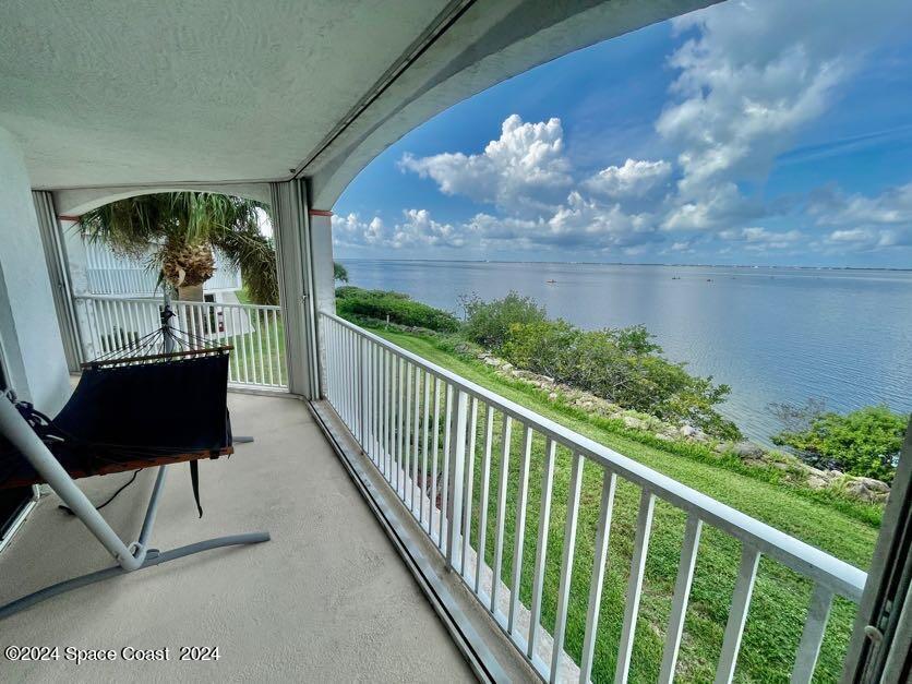 GORGEOUS DIRECT RIVER FRONT 3 bedrooms / 2 bathrooms condo in Puerto Del Rio complex. Spacious kitchen with stainless steel appliance, breakfast bar, open floor plan, ceiling fans, private wrap around balcony with storm shutters, under bldg 1 car garage, and walk-in laundry room with washer & dryer. 2 walk-in closets, double sink vanity, walk-in shower with a separate tub in master suite. Complex offers fenced in-ground community pool, river access, open parking, clubhouse, and secured lobby & elevator entrance. Wonderful and quiet neighborhood. XLNT location with easy access to Port Canaveral, KSC, restaurants, services & amenities, entertainment, Publix grocery, 520, 528, Ron Jon Surf shop, downtown Cocoa Beach, and about an hour to Orlando/ attractions!
