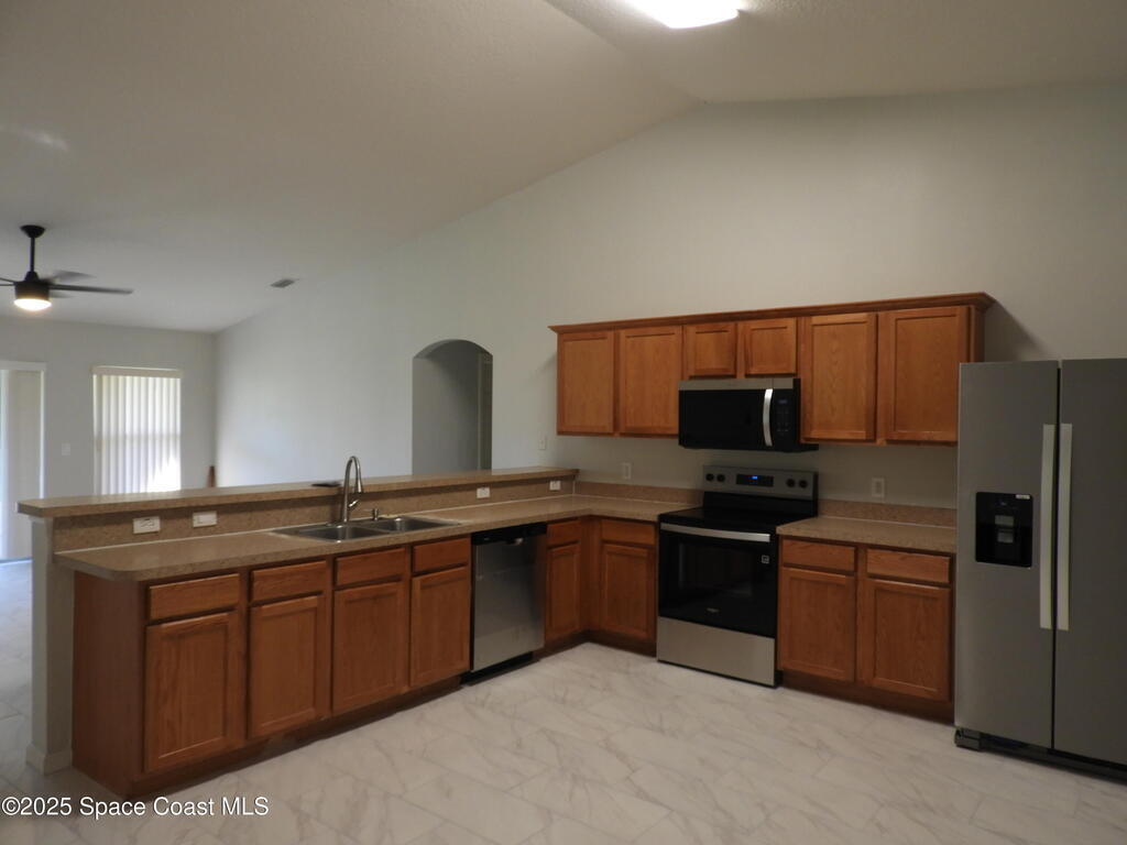 Breakfast Bar , Ceiling Fan(s) , Primary Bathroom - Tub with Shower , Split Bedrooms , Vaulted Ceiling(s) , Walk-In Closet(s)