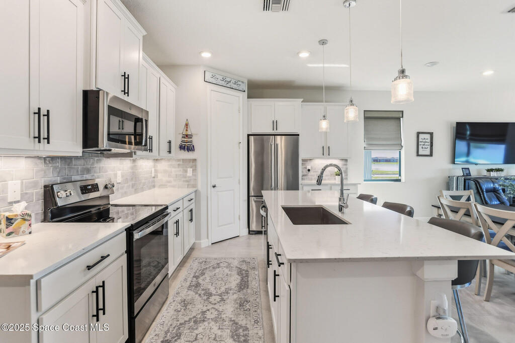 You don't want to miss this gem!!!Resort Living at its Finest!!! Welcome to Bridgewater, one of Brevard County's premier 55+ communities! This custom 3-bedroom, 2-bath home offers the perfect blend of comfort, convenience, and upgrades. Enjoy a split/open floor plan. The modern kitchen boasts stainless appliances, under cabinet lighting, designer backsplash and built in pantry. It opens into a spacious light filled great room. Primary suite has an upgraded attached bathroom. Custom closets and window treatments throughout. Additional overhead storage in the 2 car garage. Enjoy your morning coffee or the sunset on your private screened patio overlooking the water or take advantage of the MANY amenities that the Bridgewater community has to offer. With a prime location near shopping, dining, and I-95, this move-in ready home offers the Florida lifestyle you've been dreaming of!