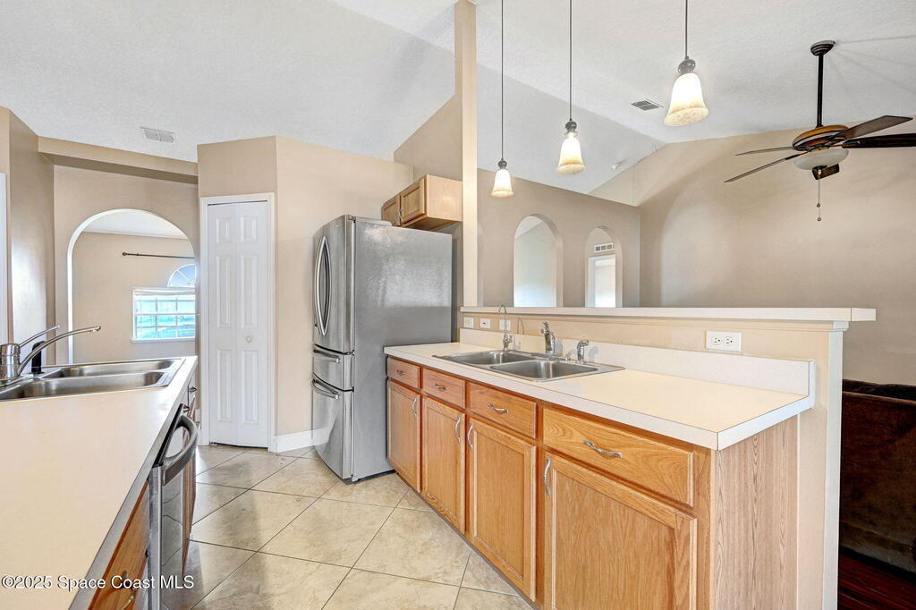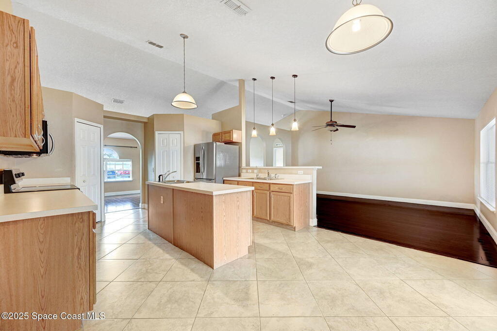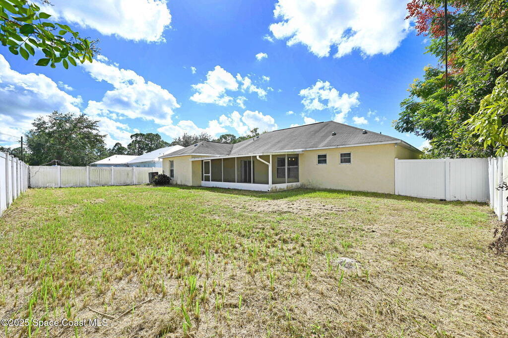 Investors Dream Needs roof replacement . This Three Bedroom Two Bathroom Two Car garage home is situated in a quiet area with easy access to the new Heritage Parkway And Palm Bay Shopping Areas. The Home Features A modern kitchen design with plenty of counterspace and a second Island, Durable wood laminate flooring and Ceiling Fans. The master bath features a walk-in shower, soaking tub and private water closet. The rear covered screened lanai stands out offering an inviting space to enjoy the outdoors. AC Replaced on 8/22 Vinyl Privacy Fenced Backyard and much much more.