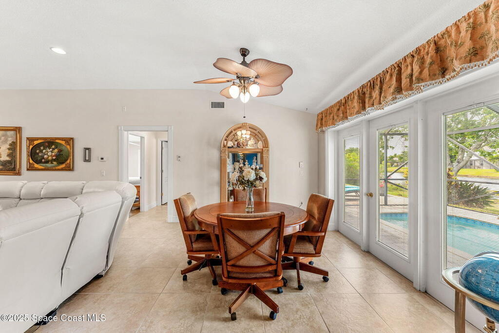 Lakefront Pool Home in Wingate Estates! This inviting 4BR/3BA courtyard-style home offers peaceful lake views and a rare 3-car garage with oversized RV bay. Updates include a new roof (2019), A/C (2020), sprinkler system (2025), luxury vinyl plank flooring in guest rooms (2024), and plantation shutters throughout (2021). The home features a generous open living and dining area, kitchen with breakfast nook, and a screened pool ideal for relaxing or entertaining. Zoned for top-rated Viera schools and close to golf, shopping, dining, and beaches. Schedule your showing today!