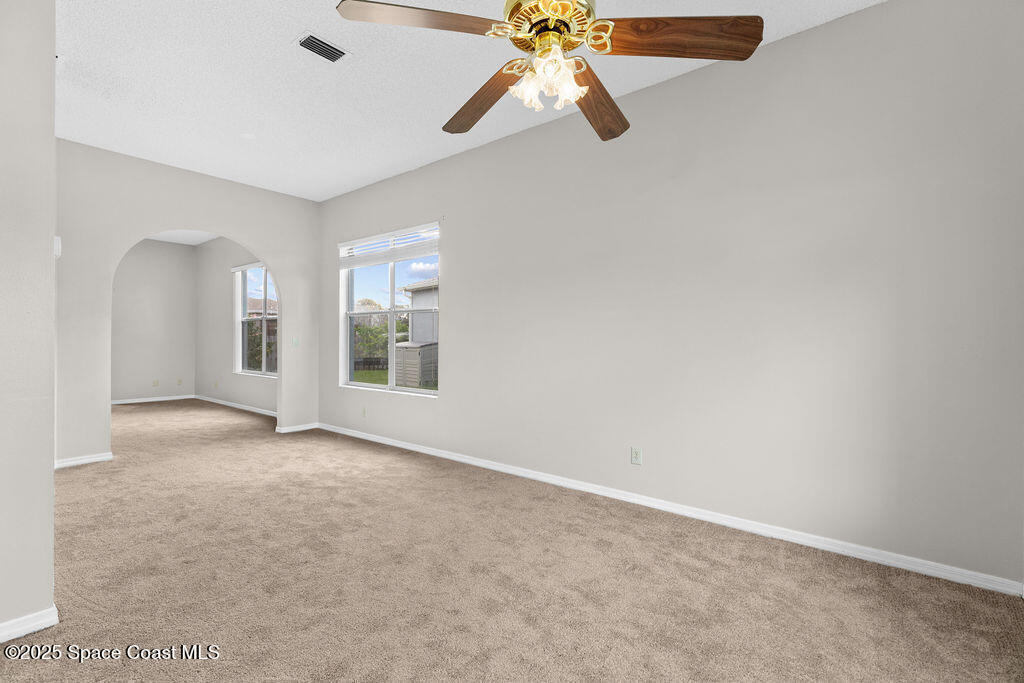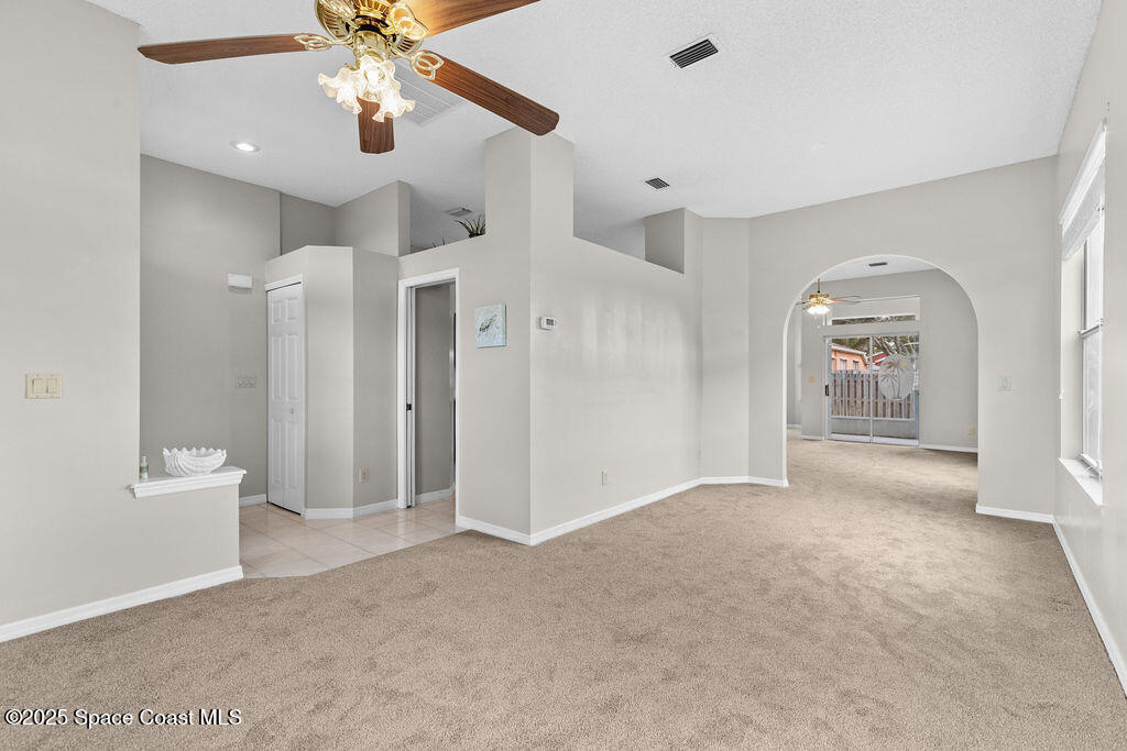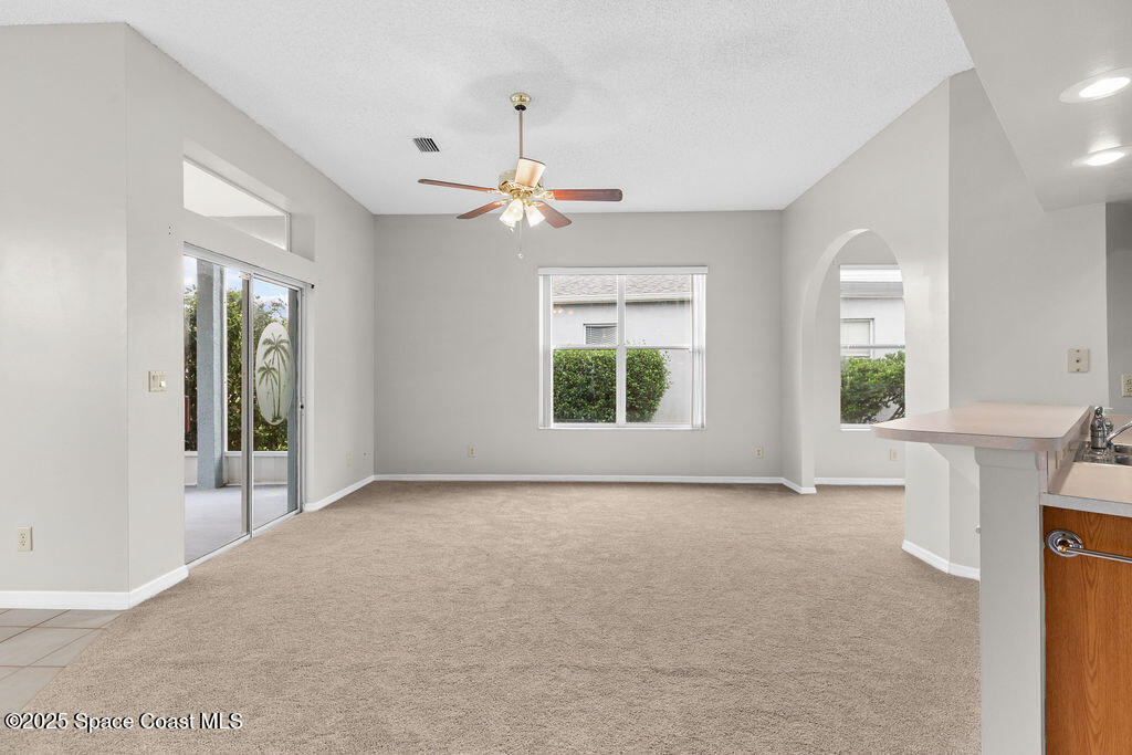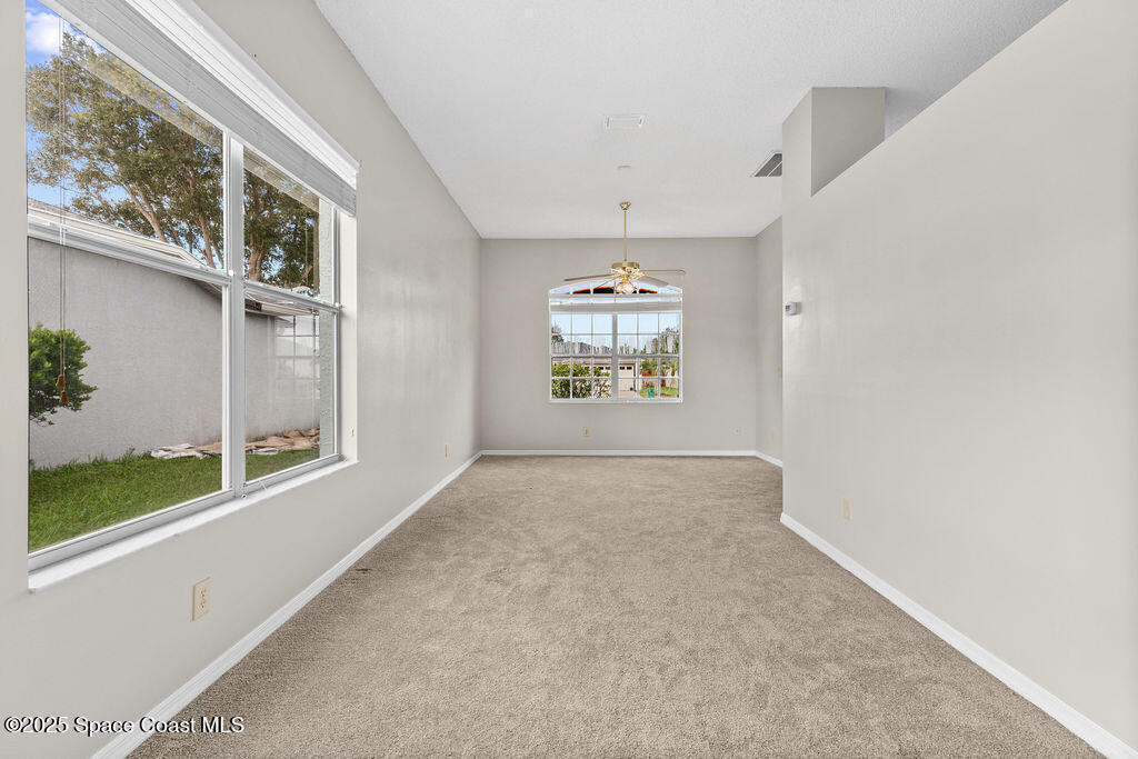 Move-In-Ready 3-Bedroom Home in Sought-After Viera Community - Well-maintained 3-bedroom, 2-bath home offers 1,644 sq. ft. of comfortable living space designed for everyday enjoyment. The bright, open living and dining area features large windows that fill the home with natural light. The spacious kitchen includes a breakfast bar, pantry, and plenty of counter space. Just off the kitchen, the cozy family room and inviting breakfast nook provide the perfect gathering space and open directly to the screened-in patio--ideal for relaxing or entertaining outdoors. This home features new carpet throughout and fresh exterior paint, offering a clean and move-in-ready feel. The roof was replaced in 2014. Residents of Hammock Trace enjoy access to a community pool and clubhouse. Conveniently located near top-rated schools, shopping, dining, parks, and I-95, this home offers the perfect balance of comfort and convenience. View the 360 virtual tour: https://my.matterport.com/show/?m=rS4DsdkUoau