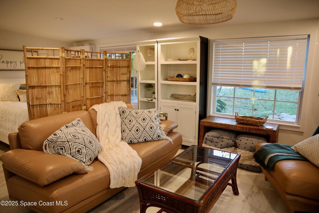 Incredible 230 ft of corner canal frontage on a deep-water lot just steps from the beach and historic downtown Cocoa Beach. This tropical oasis features a private HEATED pool, lush landscaping and direct access to the Banana River -- perfect for boating, sunsets and watching the dolphins and manatees play! The existing home includes a 2BR/2BA main house plus a fully renovated attached ADU studio in-law/guest apartment with its own kitchen and bath. New roof in 2023. Live comfortably, generate rental income or tear down and build your dream waterfront estate. The oversized lot offers privacy, endless potential, and one of the best locations in Cocoa Beach. Enjoy walkability to shops, dining and the ocean. Fully furnished and currently operating as a successful licensed vacation rental. A rare opportunity for homeowners, investors or builders -- don't miss your chance to own this prime waterfront property.