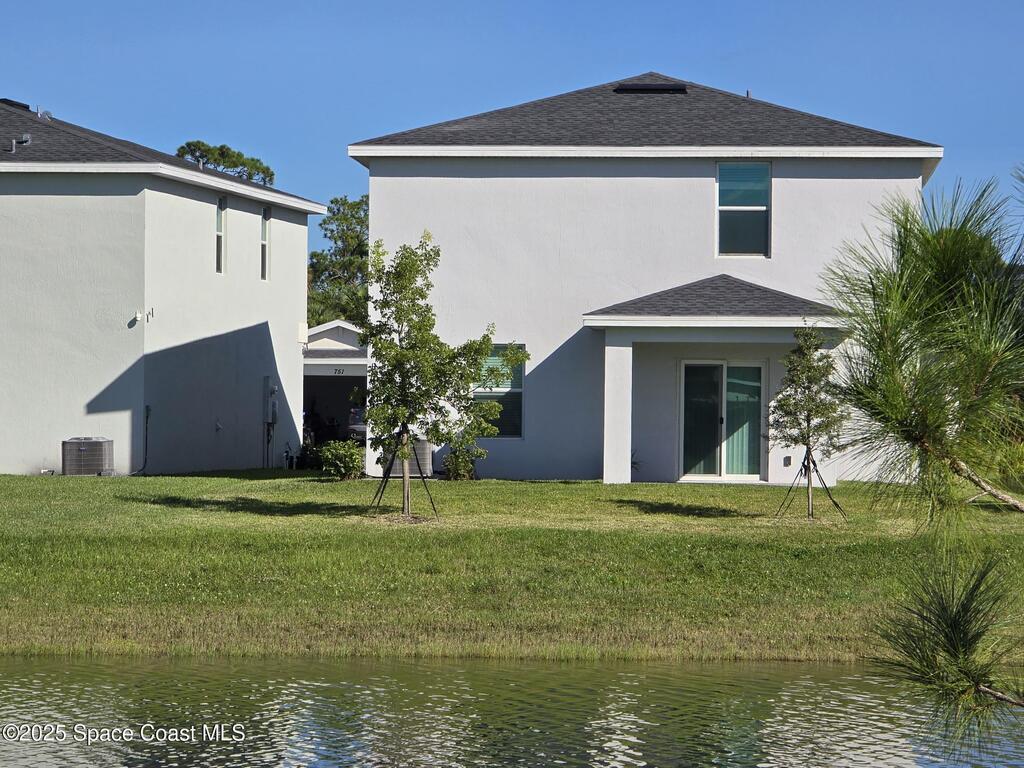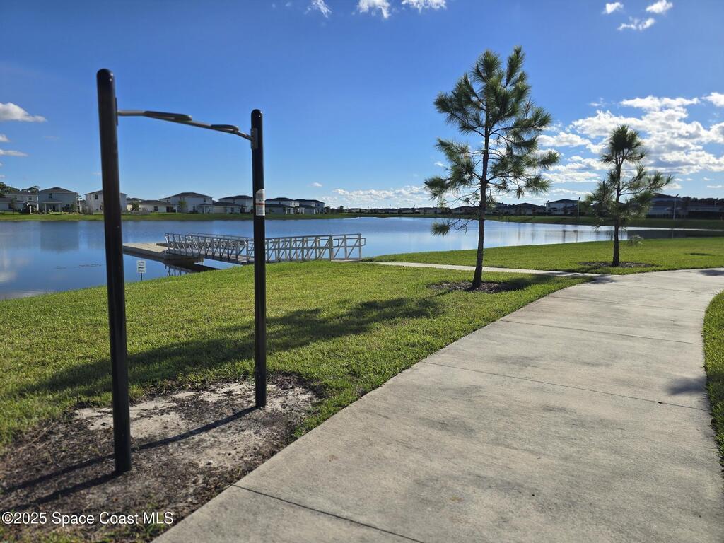 Welcome to Tillman Lakes, one of the Newest Gated Communities in Palm Bay. Conveniently Located just a few Minutes to the Recently Built Publix Center on the St. John's Heritage Pkwy. This Nearly New Lakefront 2-Story Home offers a Great Floor Plan with a Downstairs Primary Suite, Wood-look Tile in the Living Areas, a Modern Kitchen with Quartz Countertops & a Walk-in Pantry. The Upstairs Includes a Spacious Loft & 4 More Bedrooms. Solidly Built with Concrete Block on Both Stories and Impact Glass for Every Window & Slider. The Brick Pavered Driveway and Patio add a Touch of Class. You'll Enjoy Memorable Times Relaxing by the Water just Outside Your Door. The Community Features Sidewalks for Safety, Several Scenic Lakes, a Playground, Outdoor Exercise Stations, Mail Kiosks, and a Dock. This is a Great Place to Make Your New Home!