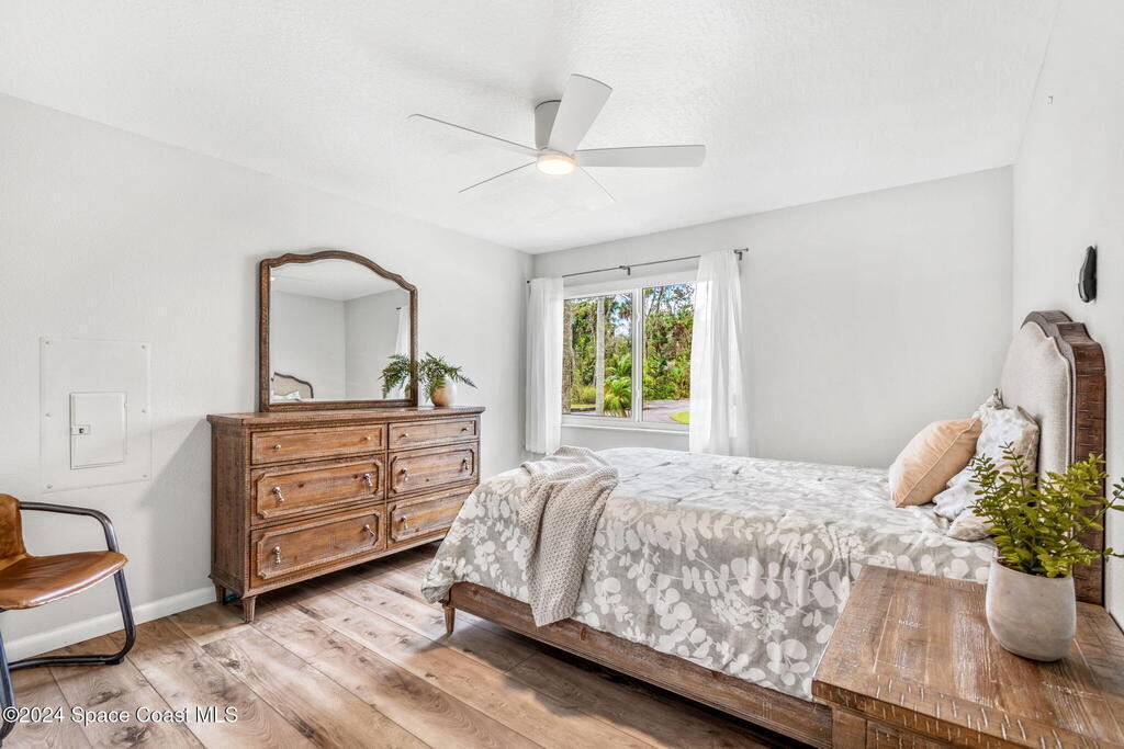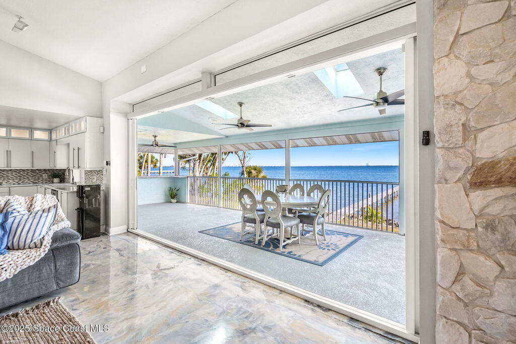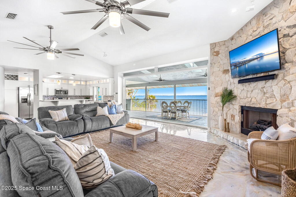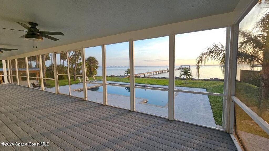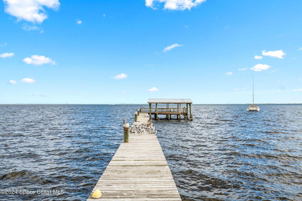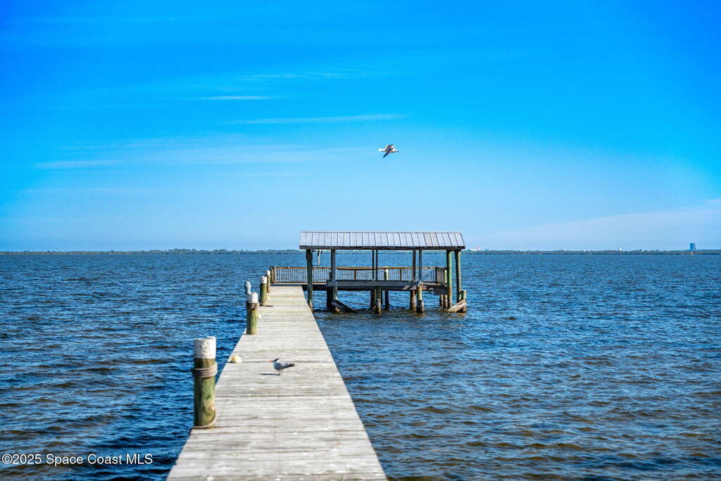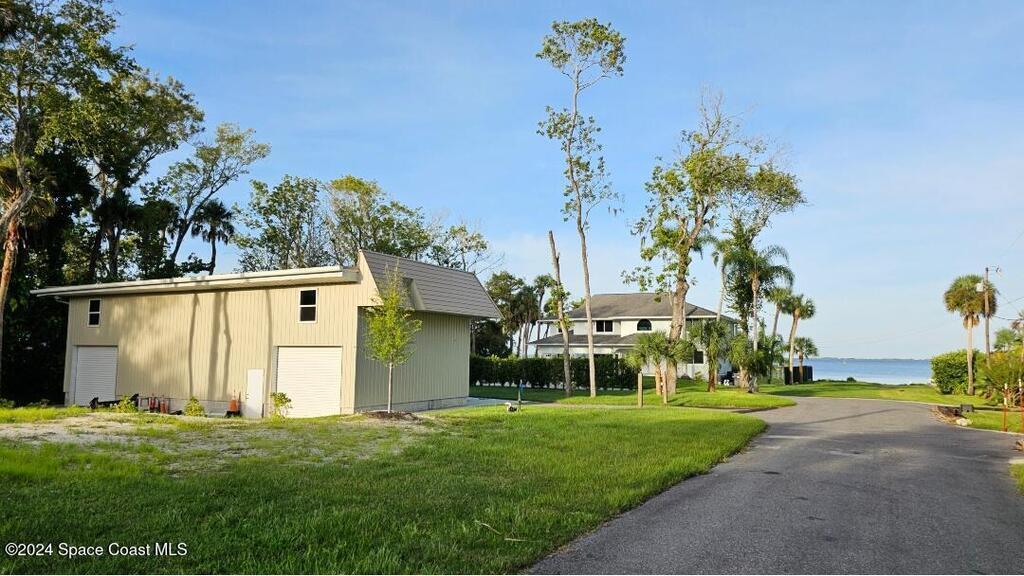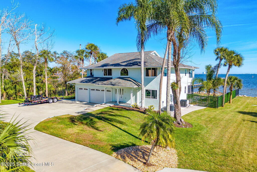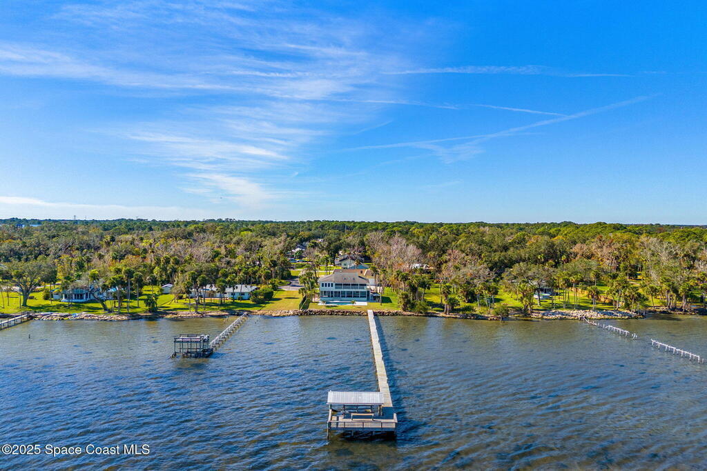 This ''Old Florida'' Riverfront Estate with pool and boat dock/lift is located 2 miles south of NASA Cswy offering direct water and rocket launch views....and both a 3-Car Attached Garage PLUS a 6-Car detached garage! Nestled on a private gated road directly on the river, it was built in 1986 with 4 bedrooms and 3.5 baths, and rests on .68 acres. There is a TON of living space both inside and out with a generous 3016 sq ft under air and 4776 sq ft under roof and over a 3-4 ft elevation. The home is exceptionally well-cared for with the prior two owners being general contractors. Level one is centered around a shared living space surrounded by three bedrooms and two full baths and opens to an absolutely magnificent 648 sq ft screened in patio (54'L x 12'D) overlooking the oversized natural-bottom heated pool and a generous 125' of direct Indian Riverfront. This truly is an entertainer's dream with an outdoor wet bar, and a fisherman's dream with your 300' private dock and boathouse.