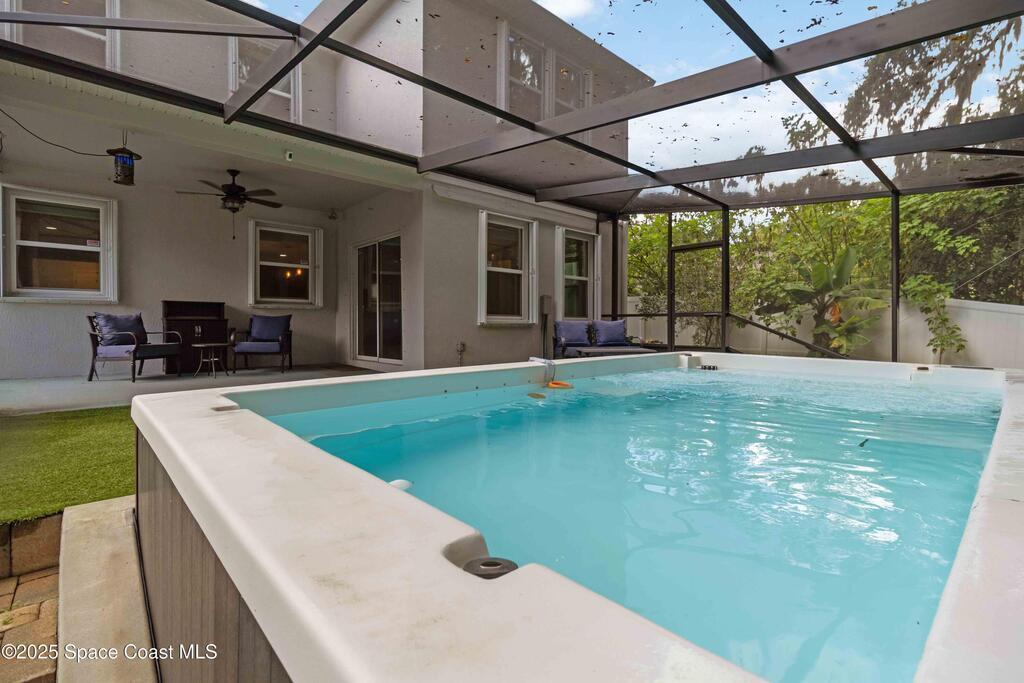 You'll feel right at home in this beautifully maintained 3-bedroom, 2.5-bath home filled with thoughtful upgrades and unique extras. The spacious open living room welcomes you in, leading to an updated kitchen featuring granite countertops, stainless steel appliances, a wine fridge, cooktop, breakfast bar, & island. A convenient half bath is located off the dining area, perfect for guests enjoying the heated swim spa installed in 2022--ideal for relaxation, hydrotherapy, or a refreshing swim. Upstairs, the primary suite offers tray ceilings, abundant natural light, a vanity area, and a walk-in closet the size of a small bedroom! The main bath includes a garden tub and a luxurious double rain shower, while the loft makes a great office or play space, with laundry nearby for convenience. Additional perks include extra storage in the 2-car garage and side room, a Ring doorbell, security system, storm shutters, and whole-house generator wiring. Close to KSC, the airport, shopping, & more!