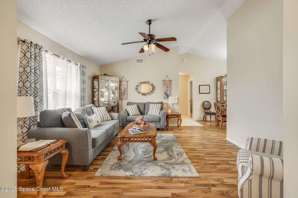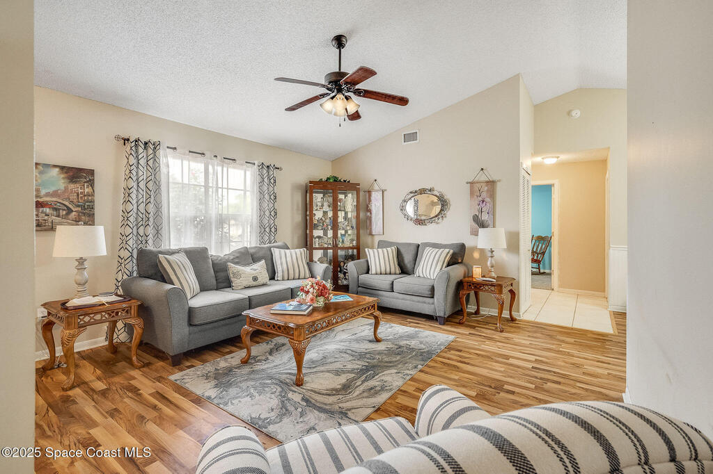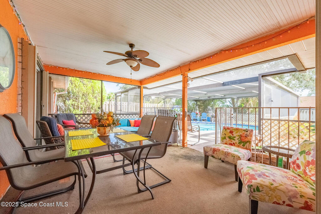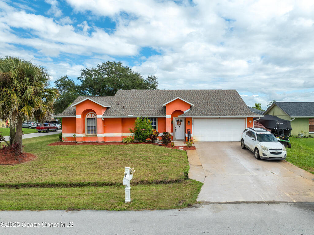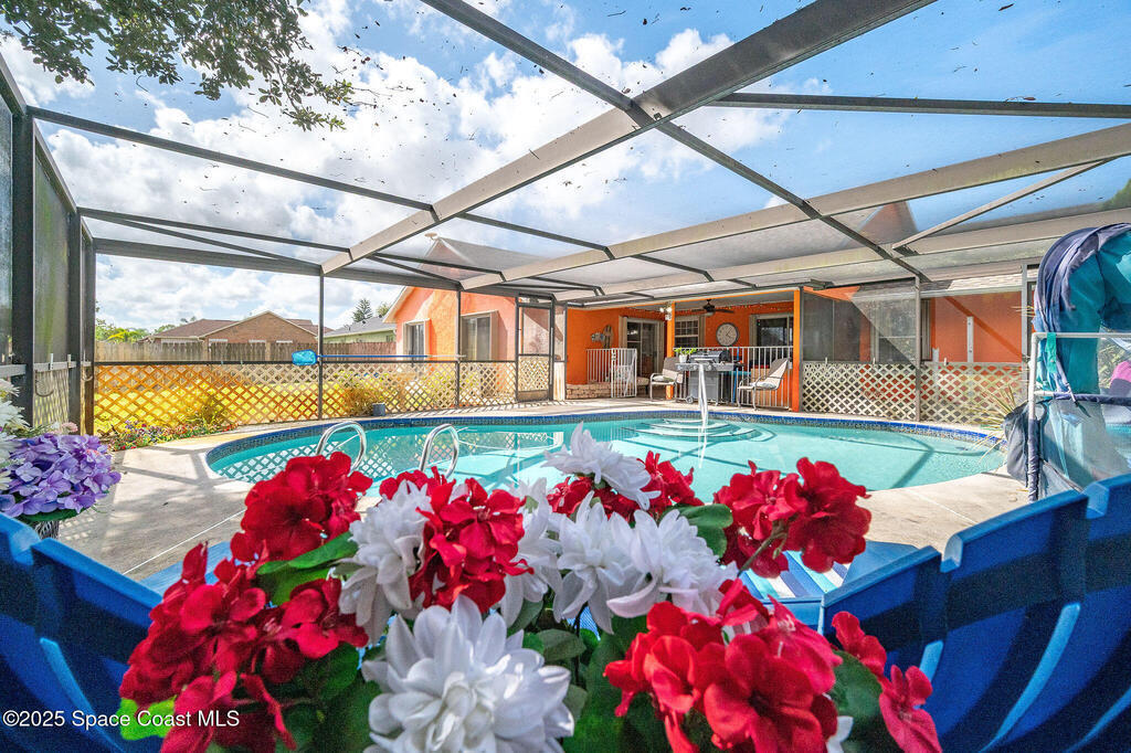 Beautiful split-plan pool home on a fully fenced corner lot in Palm Bay! Enjoy the screen-enclosed pool and patio, perfect for relaxing or entertaining. Inside, you'll find an open kitchen overlooking the family room, plus formal living and dining areas and vaulted ceilings that create an open, airy feel. The primary suite offers privacy from guest bedrooms. Additional features include fresh exterior paint, a new roof, 2019 A/C, hurricane shutters, and a storage shed. Conveniently located near shopping, dining, and I-95!