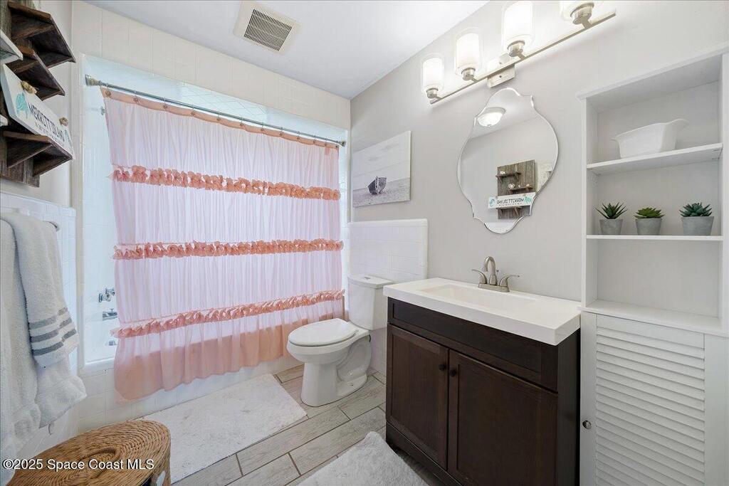 This adorable three bedroom, two bath house is centrally located in South Merritt Island. The home features an open floor plan, tile floors throughout, an updated kitchen and updated bathroom vanities. Out back you will find a fully-fenced spacious backyard perfect for the kids and pups. Recent updates include a new roof, new AC, and new impact garage door.