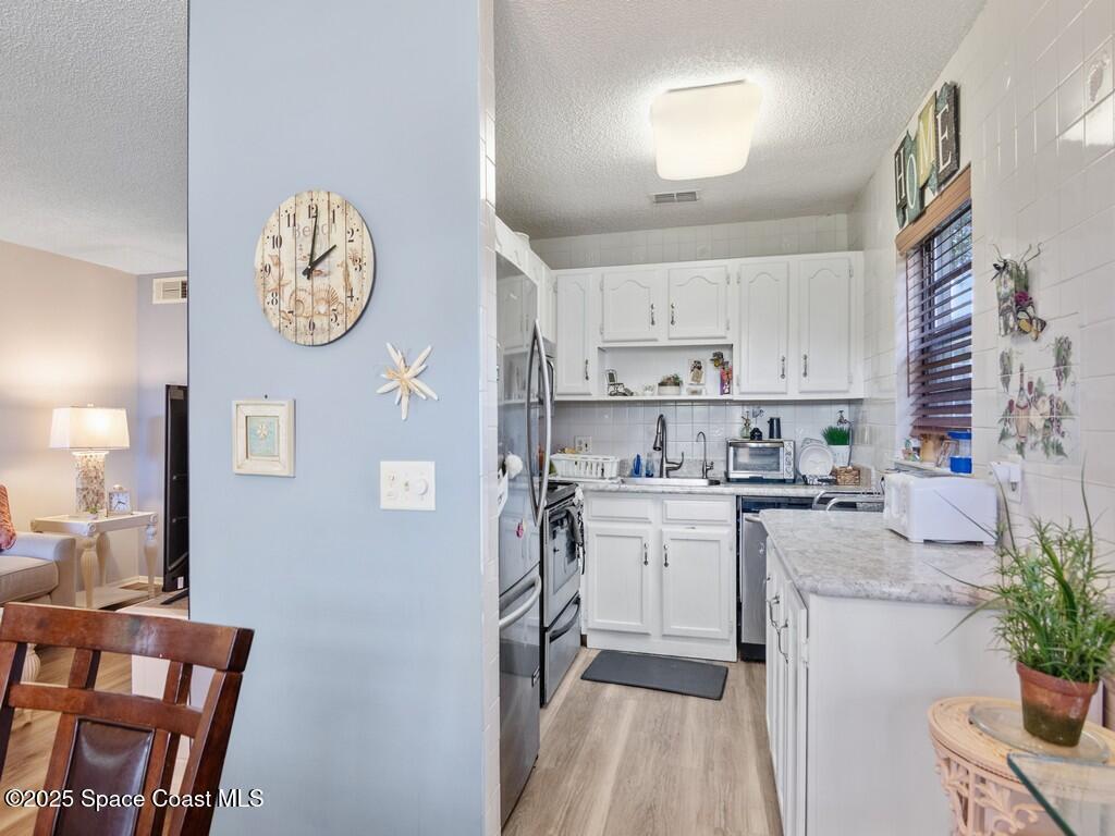 First-floor gem Turn Key in a lively Vista Gardens 55+ community! This 1-bedroom, 1.5-bath corner condo boasts all-tile interiors with custom tile accents, stainless appliances, and a bright, open layout. Step outside to enjoy a clubhouse, pool, golf, tennis, fitness room, and endless social activities. Perfectly situated near US-1 for easy shopping and dining. Ideal for active adults seeking comfort, convenience, and a vibrant lifestyle in sunny Vero Beach!