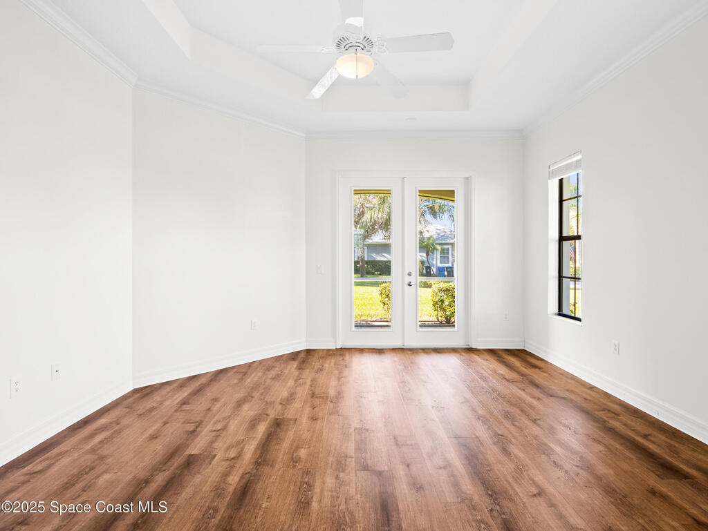 This home can be purchased with no income verification required! Discover elegance and comfort in this beautifully maintained home located in one of SE Palm Bay's premier gated communities. Set on a manicured corner lot, the grand double-door entry opens to a spacious great room with soaring ceilings and abundant natural light. The gourmet kitchen overlooks the living area and flows to the dining and breakfast spaces--ideal for entertaining. The primary suite offers dual walk-in closets, split vanities, a soaking tub, and a spa-style shower for two. French doors open to a screened lanai spanning the back of the home for serene indoor-outdoor living. Three bedrooms rest privately on the main level, with an additional vaulted suite upstairs. Features include a 2022 roof, neutral tones, and a 3-car garage.