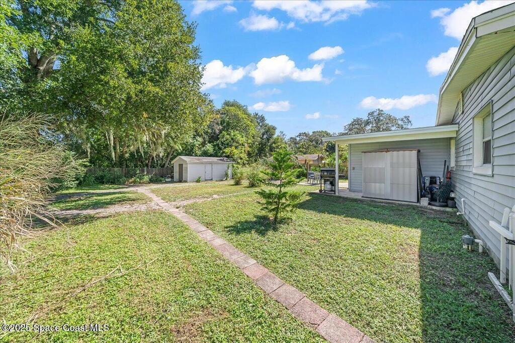Roof and HVAC 2015, Septic and drainfield replaced in 2022, new electrical panel 2025, and full repipe! This Titusville home is move in ready with all big ticket items updated. Home offers a desirable split floor plan, two separate living areas, formal dining space, and an interior laundry room. The primary suite is expansive with room for a sitting area, office space, or workout corner. The kitchen boasts a lot of natural light, stainless steel appliances, and solid wood cabinetry. Large oversized lot offers a fenced in backyard, storage shed, and garden beds along the right side of the yard. Conveniently positioned just a short drive to historic downtown Titusville, the Playhouse, Kennedy Space Center, and Florida's beautiful beaches.