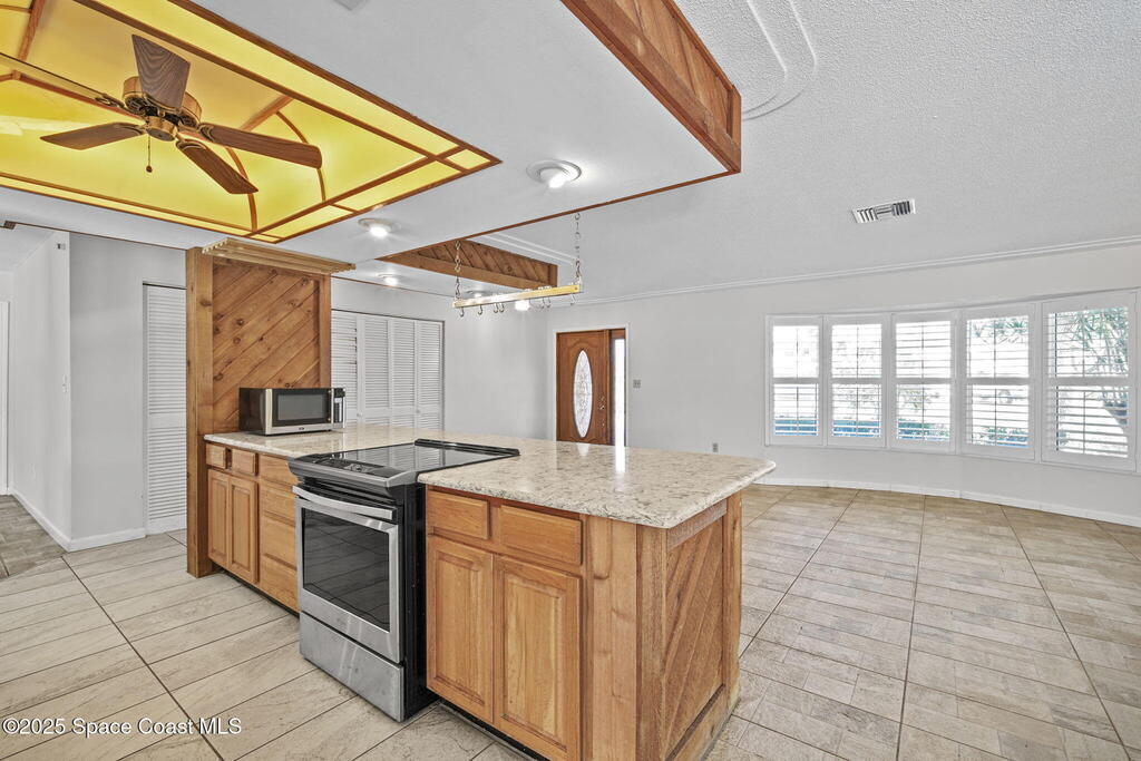 Breakfast Bar , Ceiling Fan(s) , Kitchen Island , Primary Bathroom - Shower No Tub , Primary Downstairs , Split Bedrooms