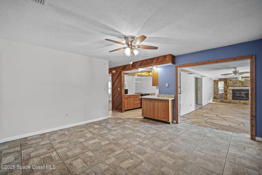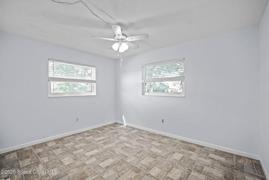 This waterfront pool home on Merritt Island boasts approximately 176 feet of frontage along a navigable deep-water canal featuring a spacious turnaround basin suitable for large vessels. With direct access to the Banana River and ocean via Port Canaveral, the property offers exceptional boating opportunities. Constructed from concrete block, the residence includes a four-bedroom split plan with two bathrooms, an inground pool, and all-tile flooring throughout. The bathrooms have been renovated, and the roof was replaced in 2016, with the HVAC system updated in 2017. Hurricane impact windows were installed in 2022, enhancing safety and energy efficiency. The open layout encompasses a kitchen, living room, family room, and a 35x13 Florida room complete with a fireplace, which provides access to a bathroom and features large sliding doors leading to the pool and waterfront. The expansive lot is surrounded by a privacy fence, mature landscaping and shade trees,