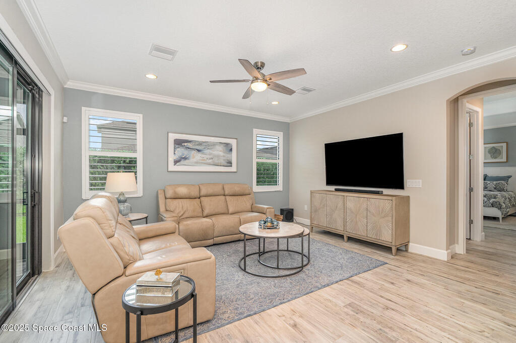 Buyers don't want to miss this--''Seller will contribute 1% of loan amount towards buyers's loan discount fee or a buydown fund, in order to assist with reducing buyers's payment with acceptable offer''This beautifully maintained and exquisitely upgraded home in the heart of Viera!! This spacious 4 bedroom 3.5 bath residence offers comfort, style and functionality perfect for any family. Nestled on a quiet cul-de-sac, this home features hurricane impact windows, tile flooring throughout, plantation shutters, crown molding, tray ceiling in primary bedroom. Full overlay kitchen cabinets, Quartz countertops, tile backsplash. A screened charming lanai for outdoor relaxation. The open layout is ideal for entertaining, while each room is tastefully decorated and move in ready. With ample space for everyone. Per seller enough room in back yard to add a pool. This home is a rare find in one of Viera's most desirable neighborhoods. Enjoy resort-style amenities at the Addison Village Clu