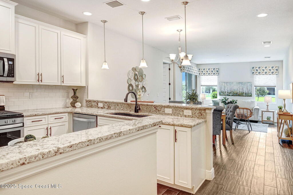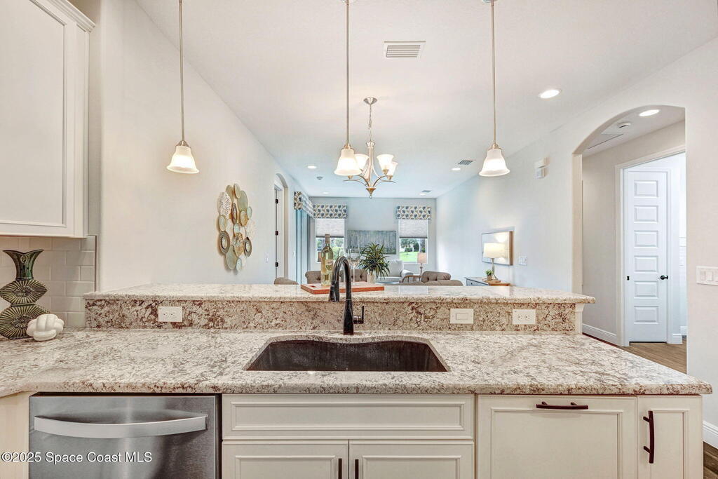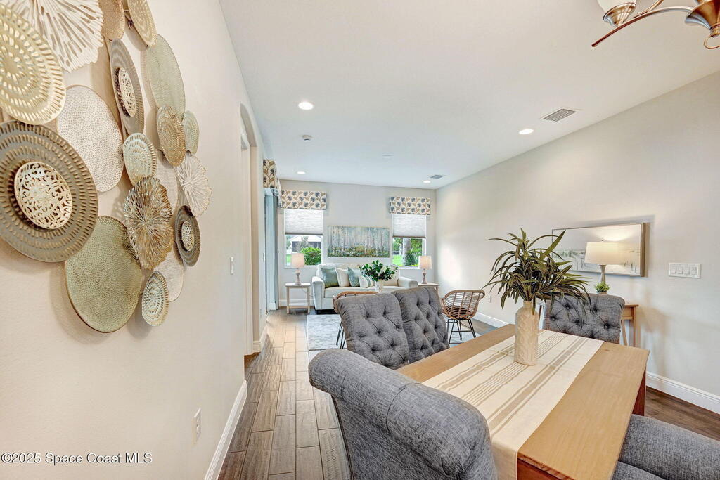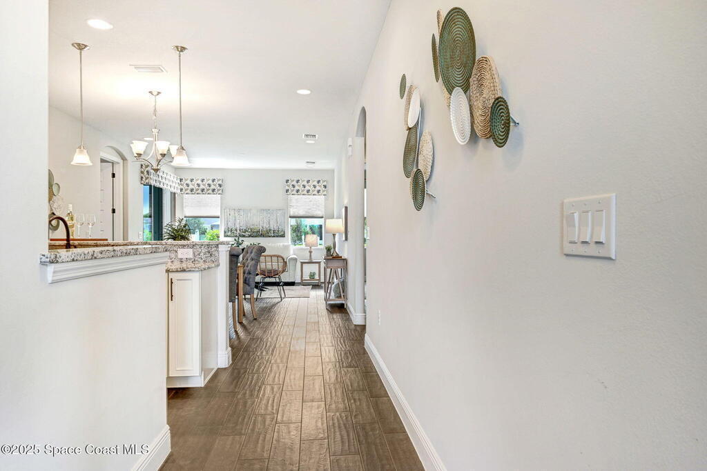 Skip the construction dust and move right into this beautifully upgraded duplex. Offering peaceful lake views, a private side yard, and an open layout, this 3BD/2BA home delivers the perfect blend of modern design and low-maintenance living, without the wait or added costs of new construction.Inside, you'll find luxury wood look tile flooring, high ceilings, and a spacious kitchen with 42'' cabinets, granite counters, and stainless-steel appliances. The split-bedroom layout gives everyone space to spread out, while the primary suite offers a serene retreat with a walk-in closet and spa-style shower.Enjoy your morning coffee or evening glass of wine on the screened lanai overlooking the water. It's a peaceful backdrop you'll never get tired of. Because it's an end-unit, you'll also appreciate the extra windows, privacy, and green space that most neighboring homes can't offer.HOA dues cover lawn care, exterior maintenance, and access to the Addison Village Club amenities.